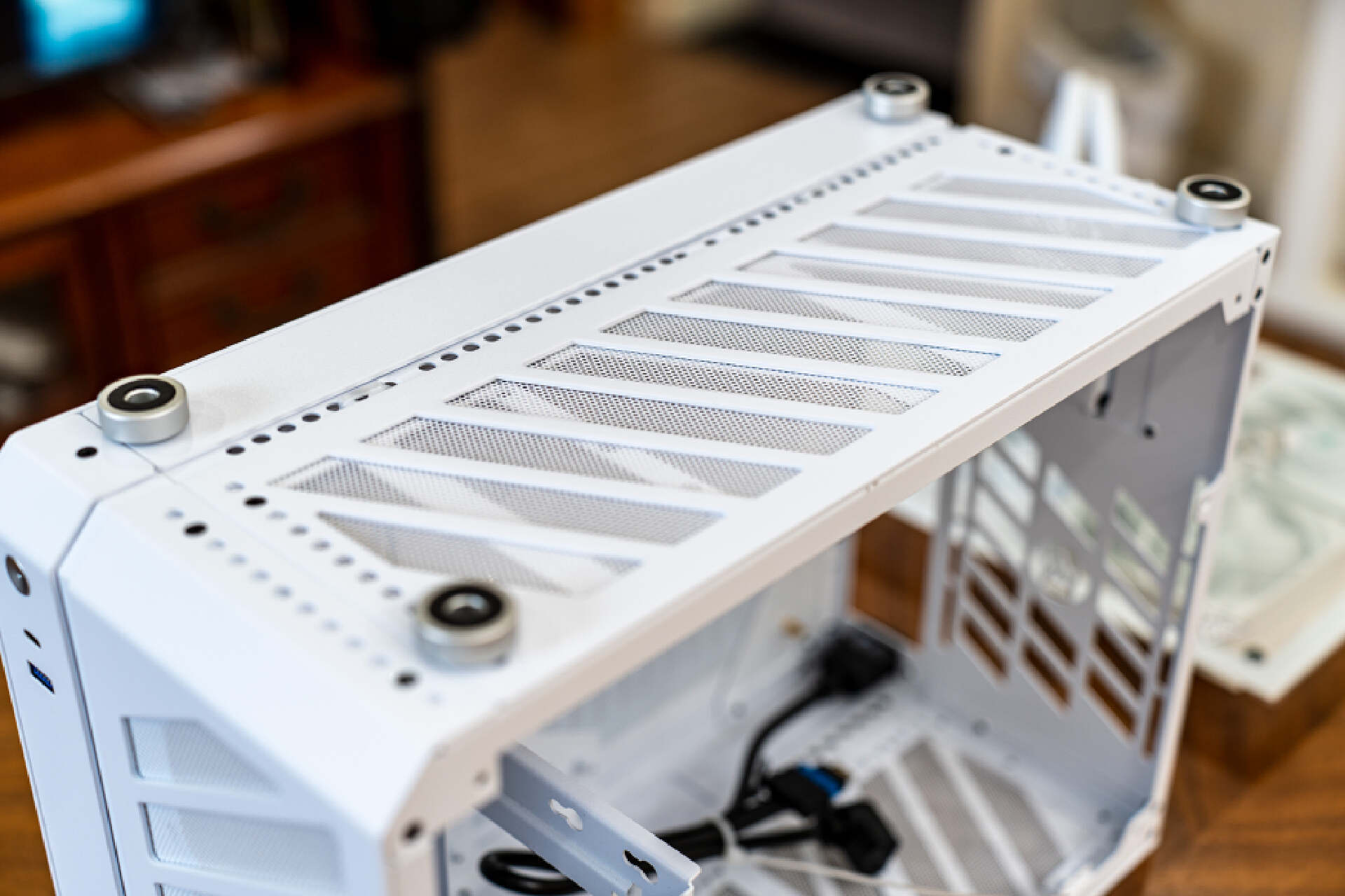 ▼機箱採用 MATRIX 矩陣設計,外殼與內框可以徹底分離。除了螺絲拆起來比較繁瑣,安裝走線還是比較舒適的。此外內部鋼材都有折邊、包邊等設計,可以完全避免“滴血認親”的情況發生。