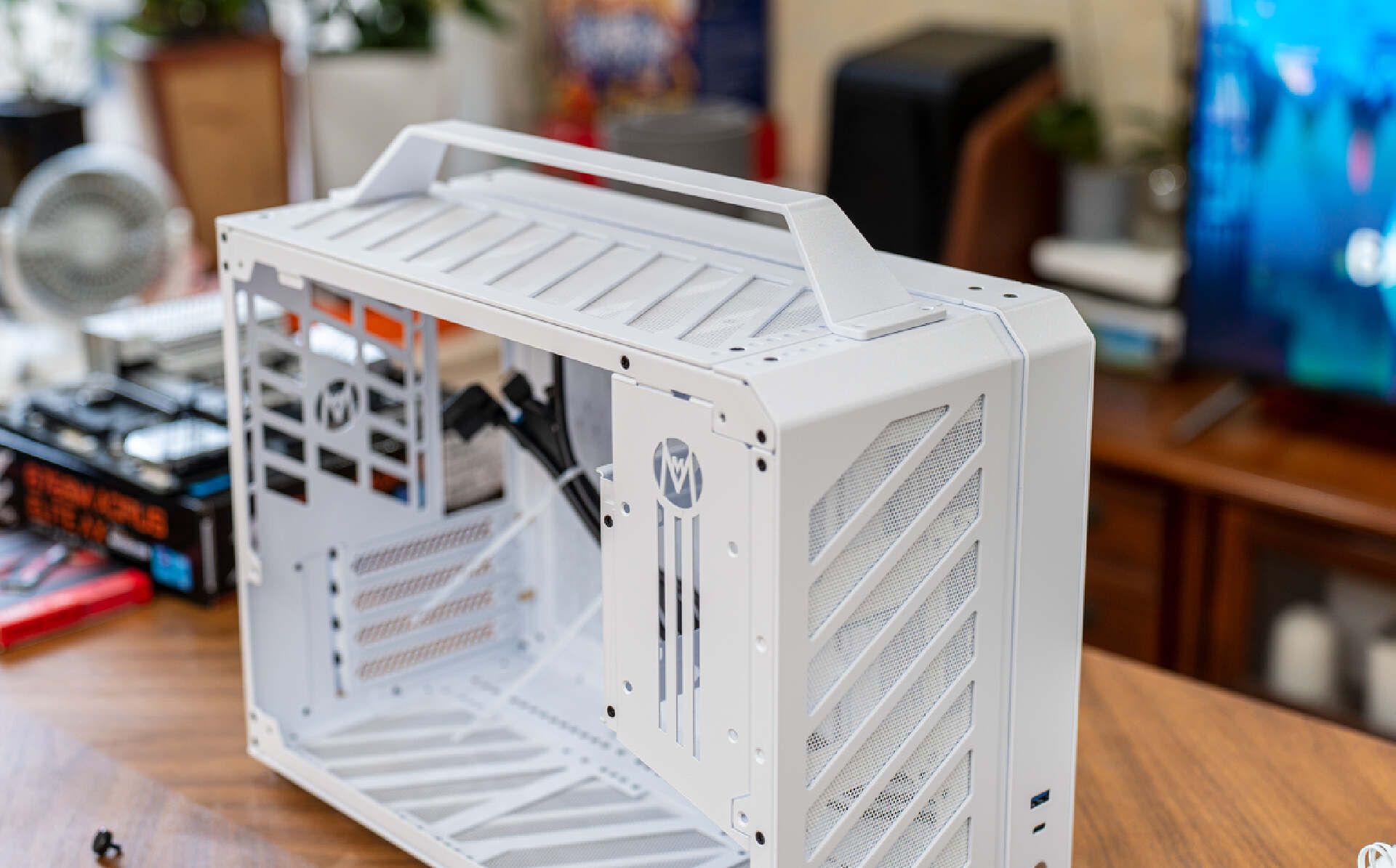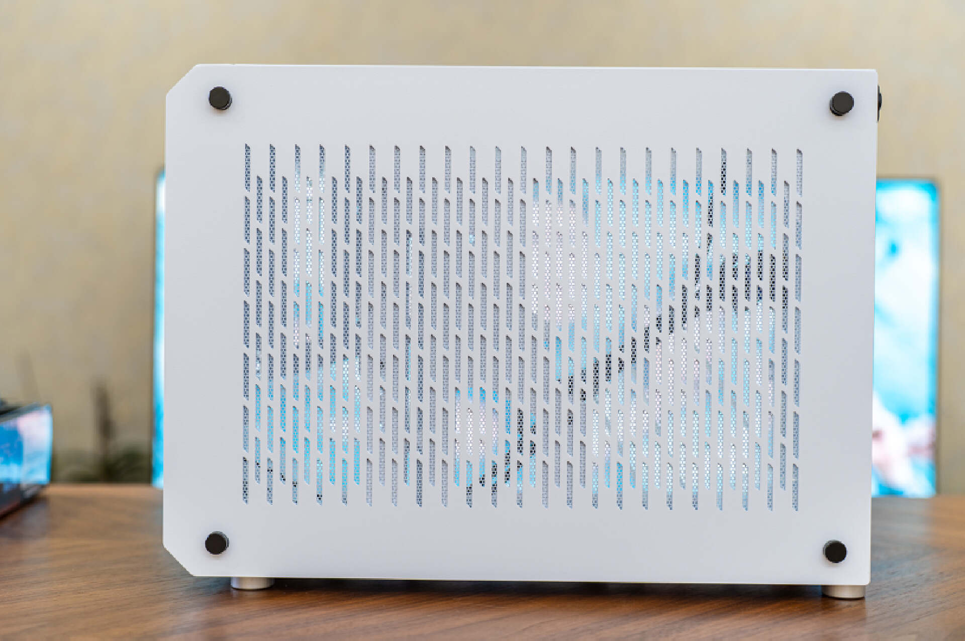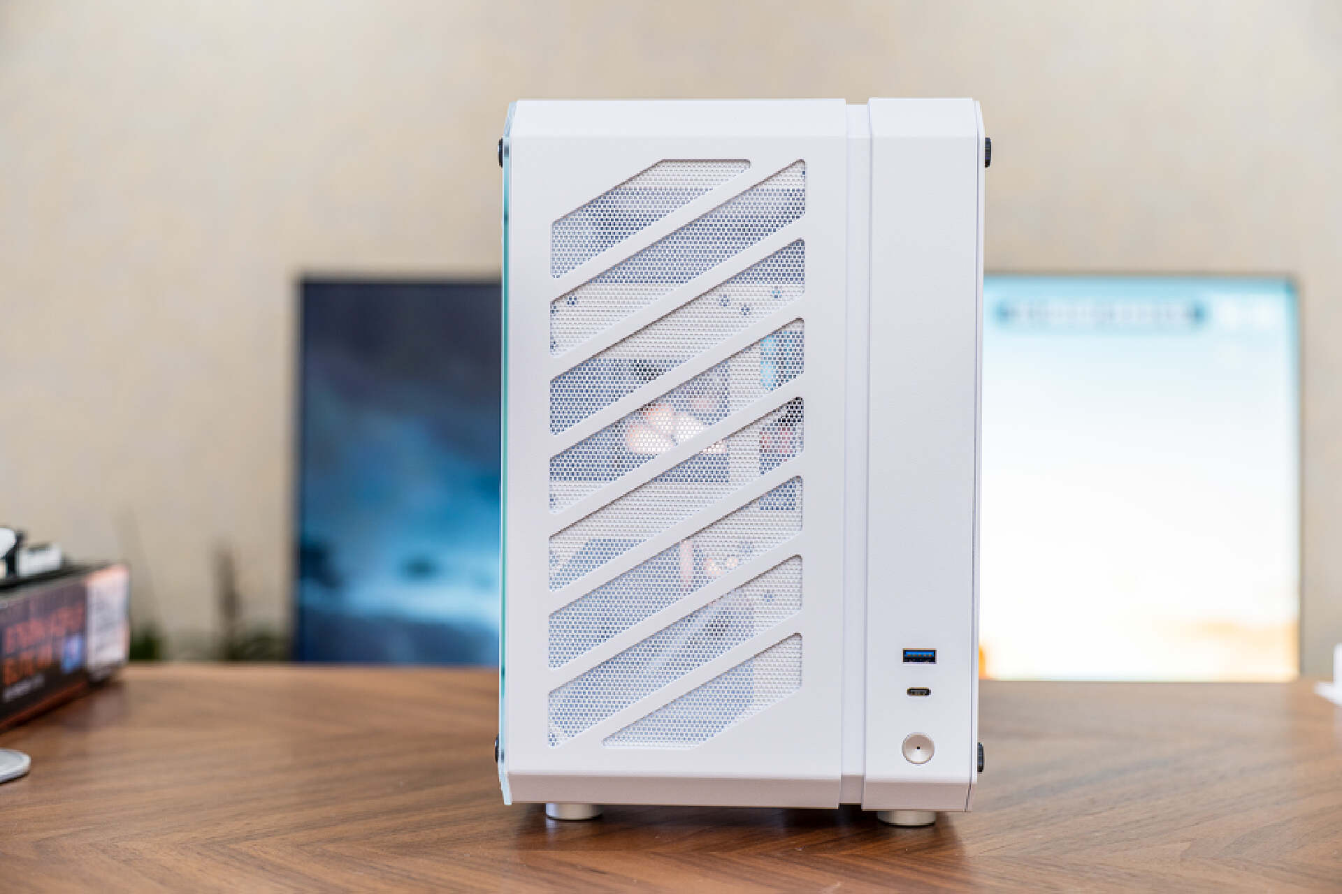 ▼機箱是機械大師 C+ max,鋁合金機身顏值超高,關鍵是體積極致緊湊,不僅能上水冷和 40 系顯卡,還有多餘的位置裝機箱風扇和硬盤,自帶提手方便移動。除了價格和螺絲多就沒啥缺點了。