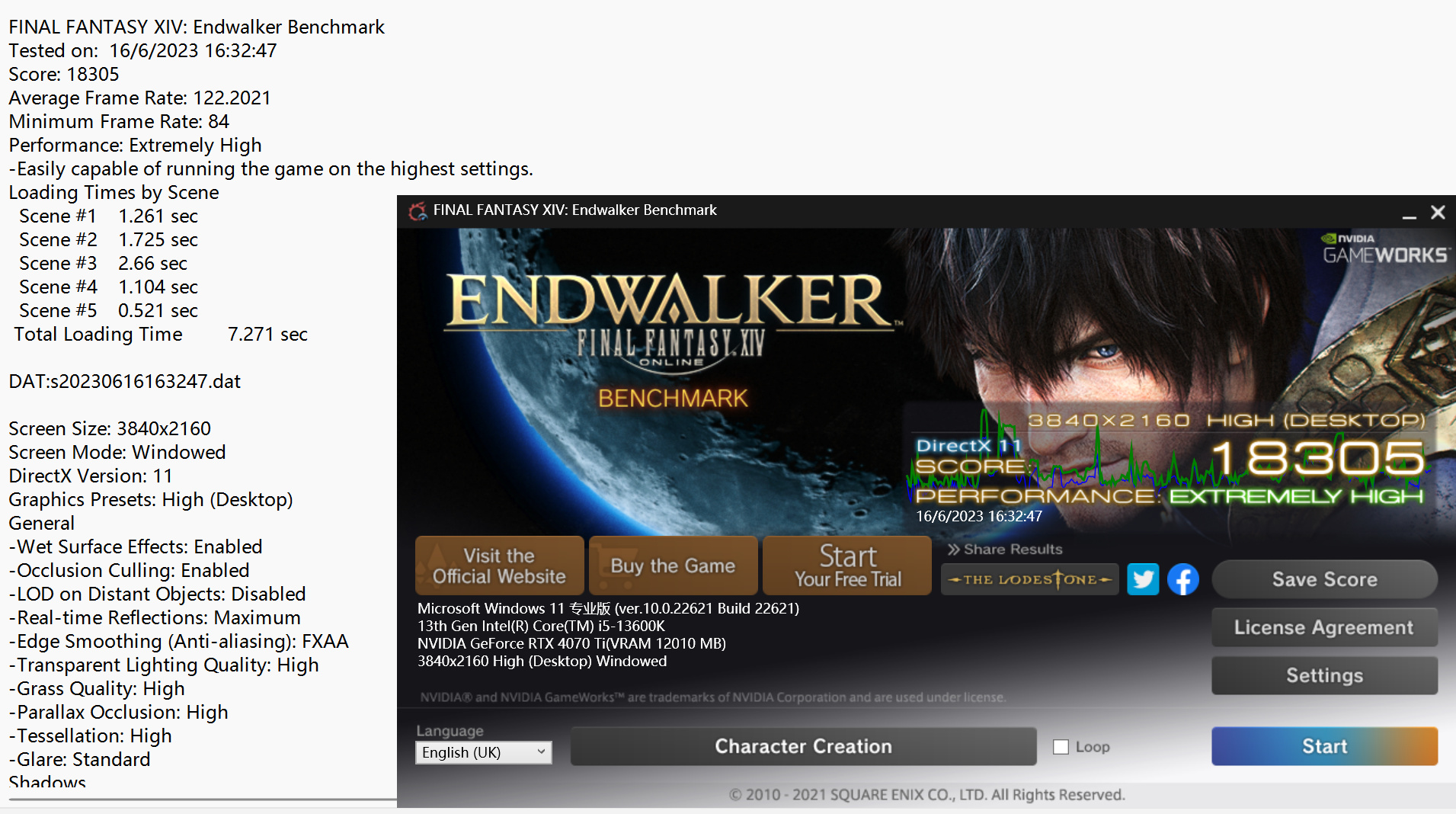 ▼順便利用《最終幻想14》的 BenchMark 測試了電腦在載入遊戲場景時所使用的時間,也就是所謂的讀盤時間(Loading time)。這個數據和 內存、硬盤影響較大,5 個場景測試下來總共耗時 7.271 sec,算是很優秀的數據了。
