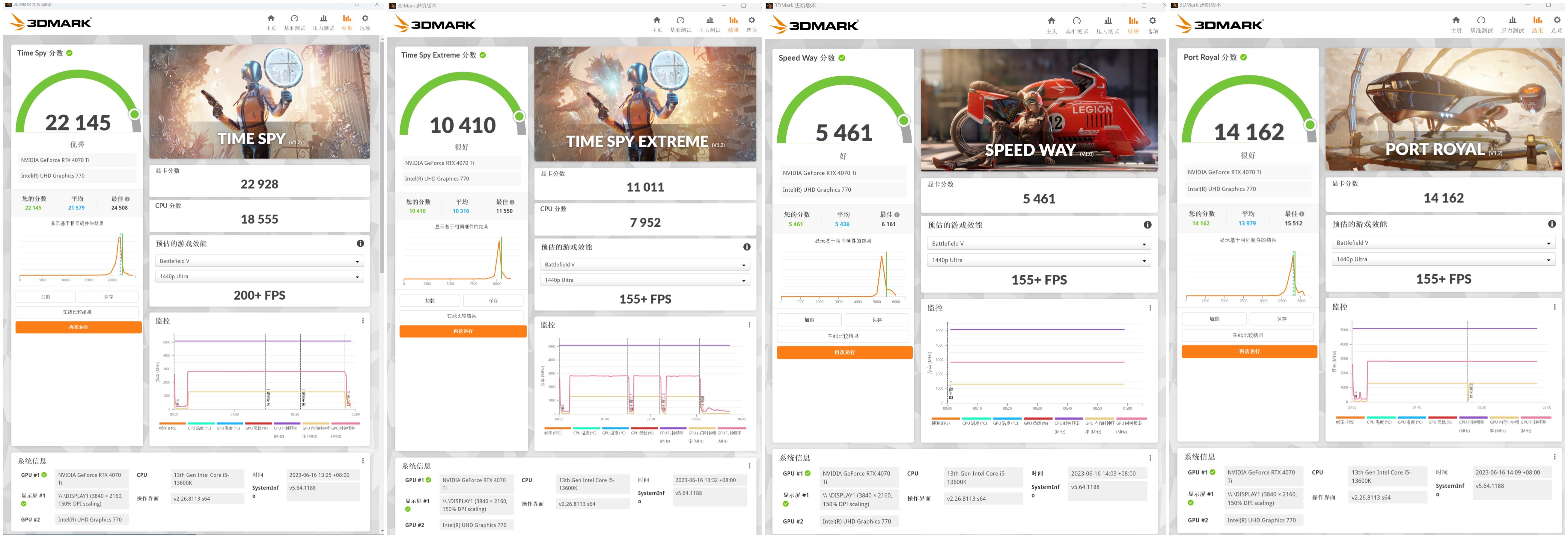 ▼首先還是經典的 3DMark ,運行三個測試,分別爲針對 DirectX12 的 【TimeSpy 】2K / 4K,針對 DirectX12 Ultimate 基準測試的【 SpeedWay】、針對實時光線追蹤基準測試的 【Port Royal】,結果如下