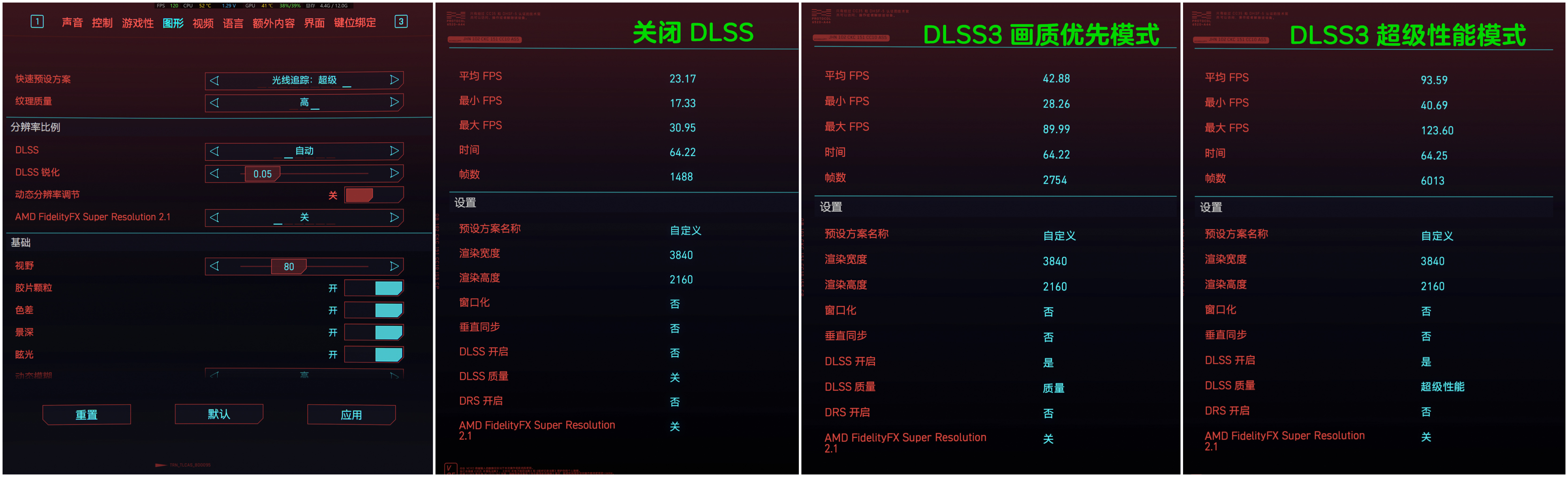 DLSS3 對遊戲的提升效果是真的明顯,像我之前用 4080 做測試,開啓關閉甚至能相差 70 多幀,完全是天與地的區別。