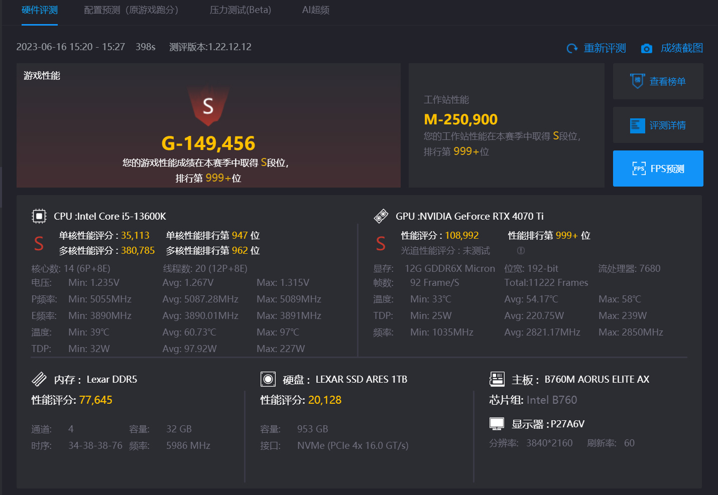 ♥️ 性能方面 13600K + 4070TI 的組合,基本可以保證 4K 遊戲通殺,高頻內存和 PCIe4.0 固態也讓日常使用更加流暢。另外就是建議在可能的情況下存儲硬件首選國產品牌,想來沒人希望重新回到 一 條內存 800+ 的年代吧