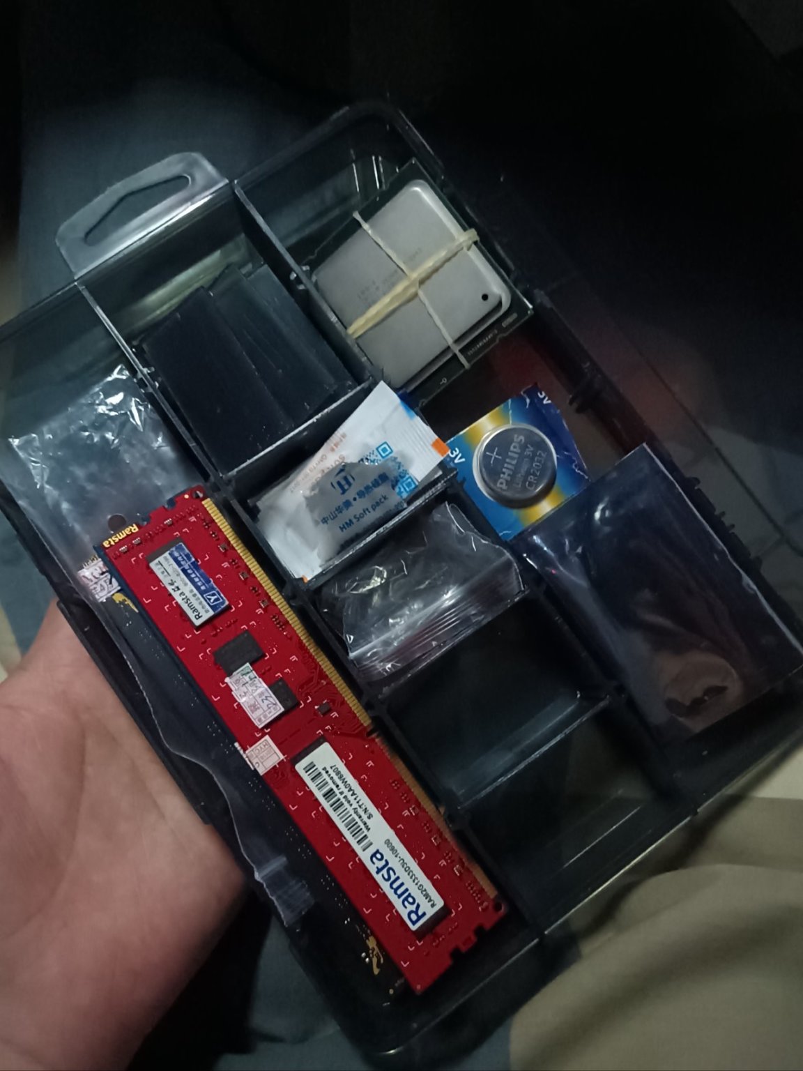 零散東西的收納的話,我是買了一個小收納盒,隔板是可拆卸的,放點cpu內存硅脂之類的還是夠用的,畢竟我這裏也沒什麼地方擺着,這些東西放箱子裏也不好找,所以索性買了個收納盒,也才三四塊錢(抖音上花了一塊多,發貨的時候pdd給我發了消息,樂死我了)。