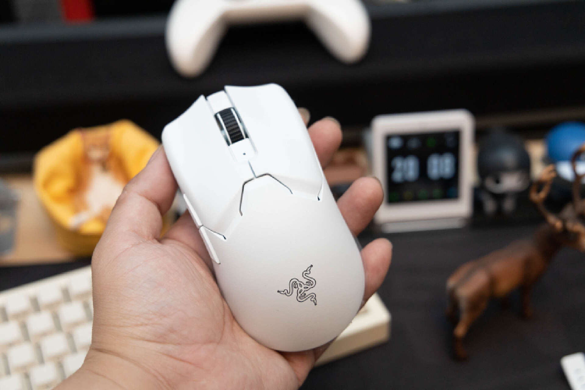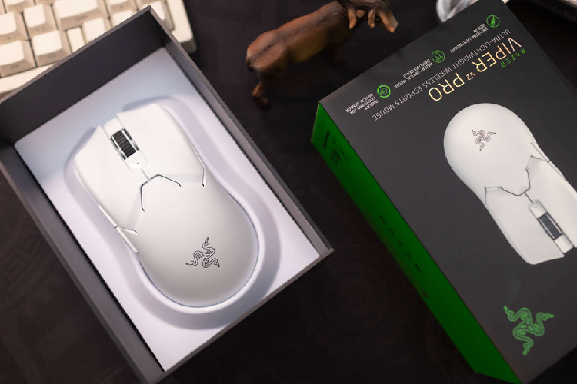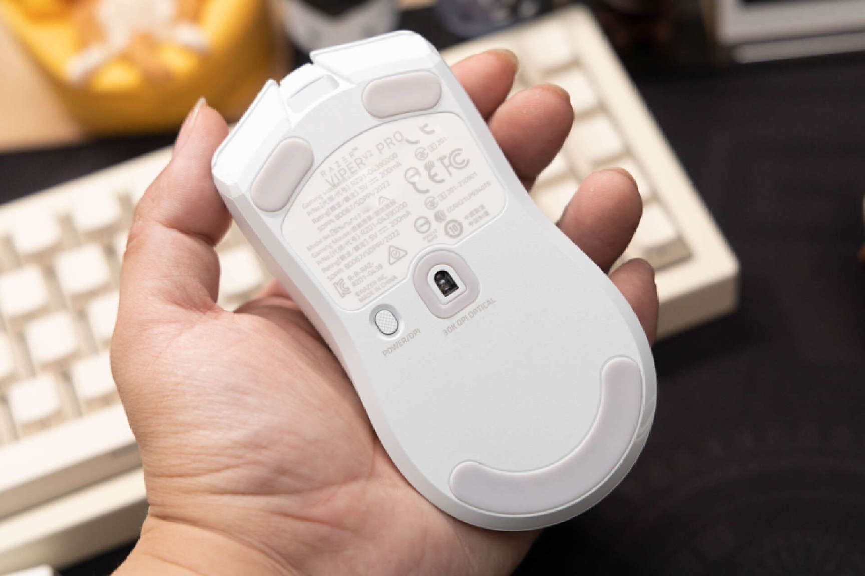 今年在桌面布局方面,准备尝试下当下流行的白色组合,所以趁着年中大促开始升级。鼠标这块,因为我手掌比较大,所以在选择时更偏爱中大鼠标。目标明确,主要纠结入手雷蛇的炼狱蝰蛇V3还是毒蝰V2 Pro,两者性能都很强,并常见于电竞职业联赛中。两者区别在于前者的背部曲线更高,而后者重量更轻。最后综合考虑日常习惯和长时间游戏使用的需要,我选择了更加灵活轻盈的毒蝰V2 Pro白色版。