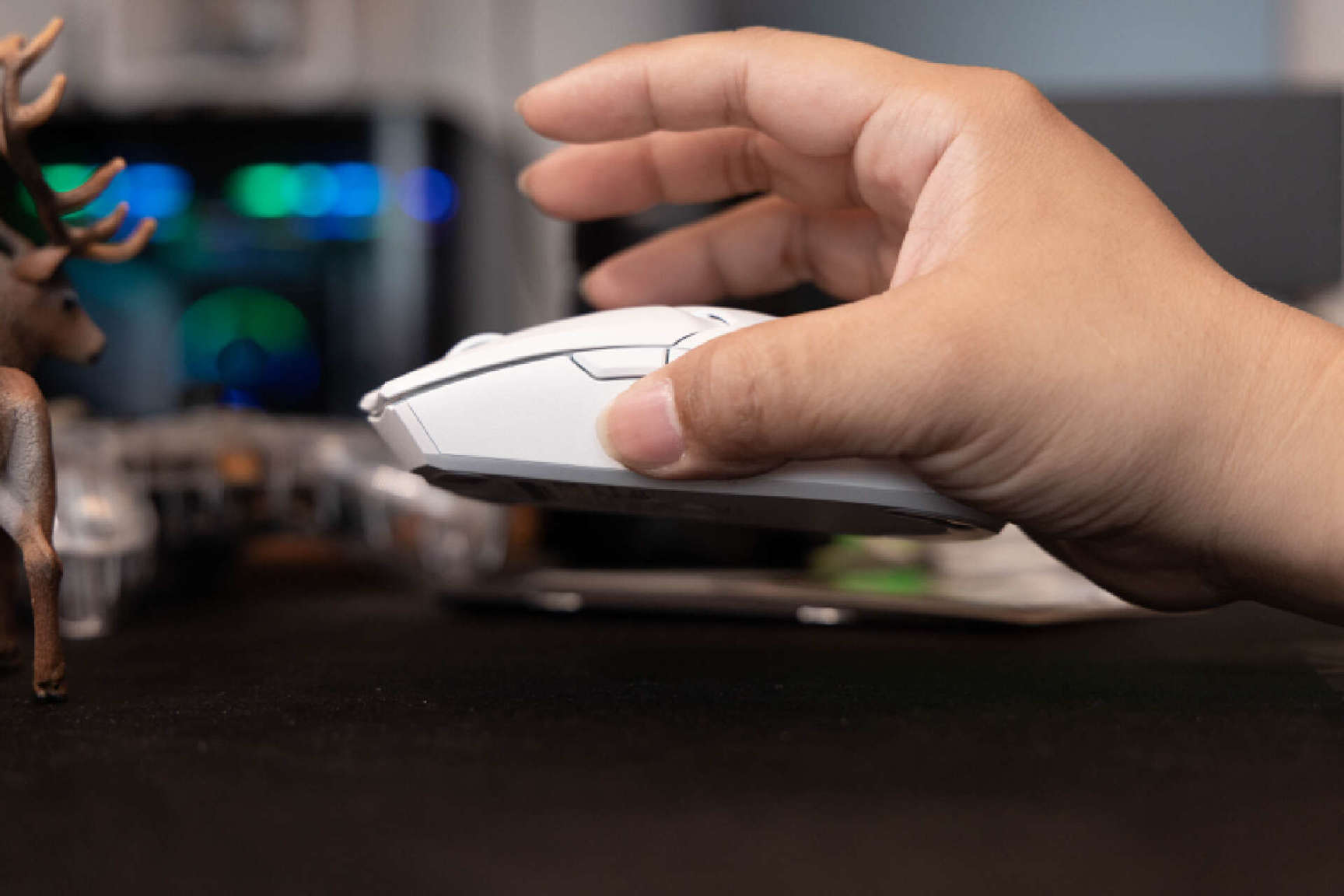 鼠标右侧是一整块的侧裙,配合内凹弧形腰线,可以很好的让玩家安放无名指和小指,抓取鼠标时也更加轻松。