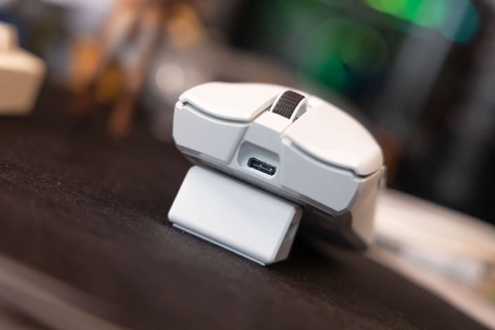 鼠标前端内置了TYPE-C多功能接口,不过由于隐藏式的结构设计,最好搭配原厂数据线使用,第三方数据线的接头可能存在兼容问题。
