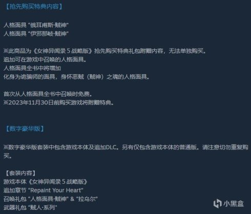 官方公布了抢先预购特典内容,数字豪华版内容,目前暂未公布具体PC端配置要求,根据商店内的视频和截图大致判断,能带得动《女神异闻录5:皇家版》,相信这款新作也不是问题