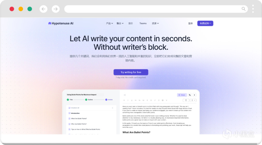 Hypotenuse AI 最爲人稱道的地方在於,僅需要提供幾個關鍵詞,「知識豐富」的 Hypotenuse AI 就會立即把它們變成完整的文章和營銷內容。同時還提供 API ,由此將上述智能文案應用到客戶生意的每一種內容場景中。非常強大。