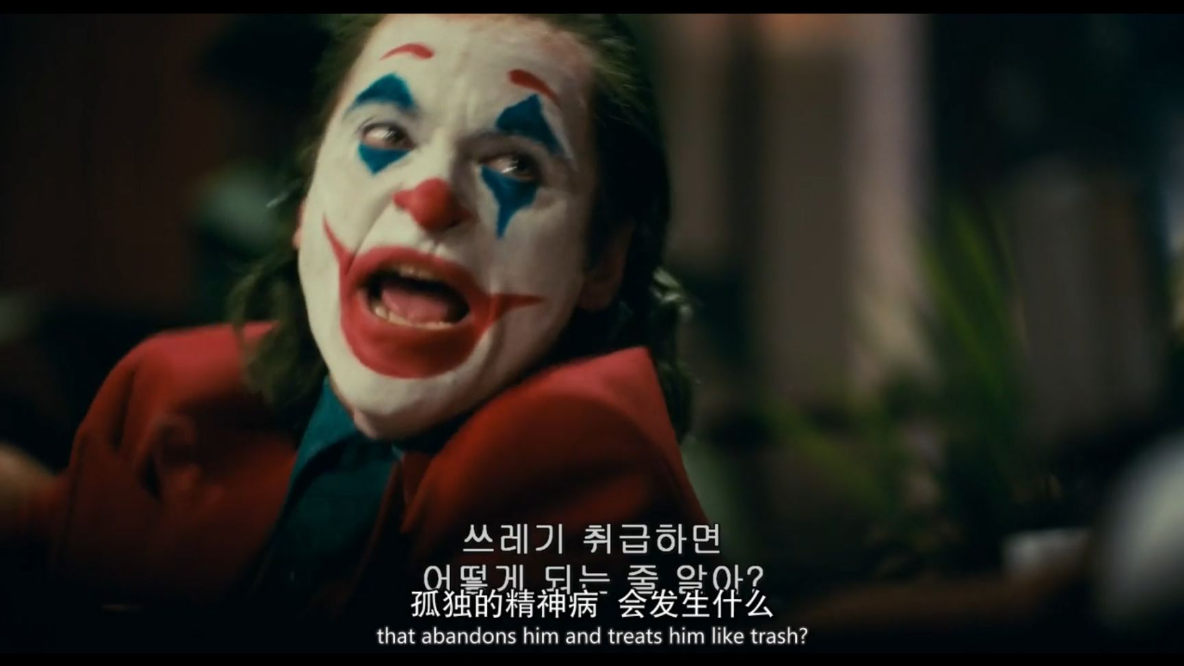 亞瑟是一個失敗的人,他的失敗並不只來源於他,更是來自於哥譚市的社會,毫無限制的欺凌和羞辱他的小孩,身披精英外袍的社會渣滓在地鐵上肆意毆打他,在公交車上出於好心與善意想要逗小孩笑也被誤解爲騷擾,默裏在電視上公然播放他的表演並無限的恥笑,而家中的母親還有妄想症,每天都在想着與托馬斯韋恩聯絡。