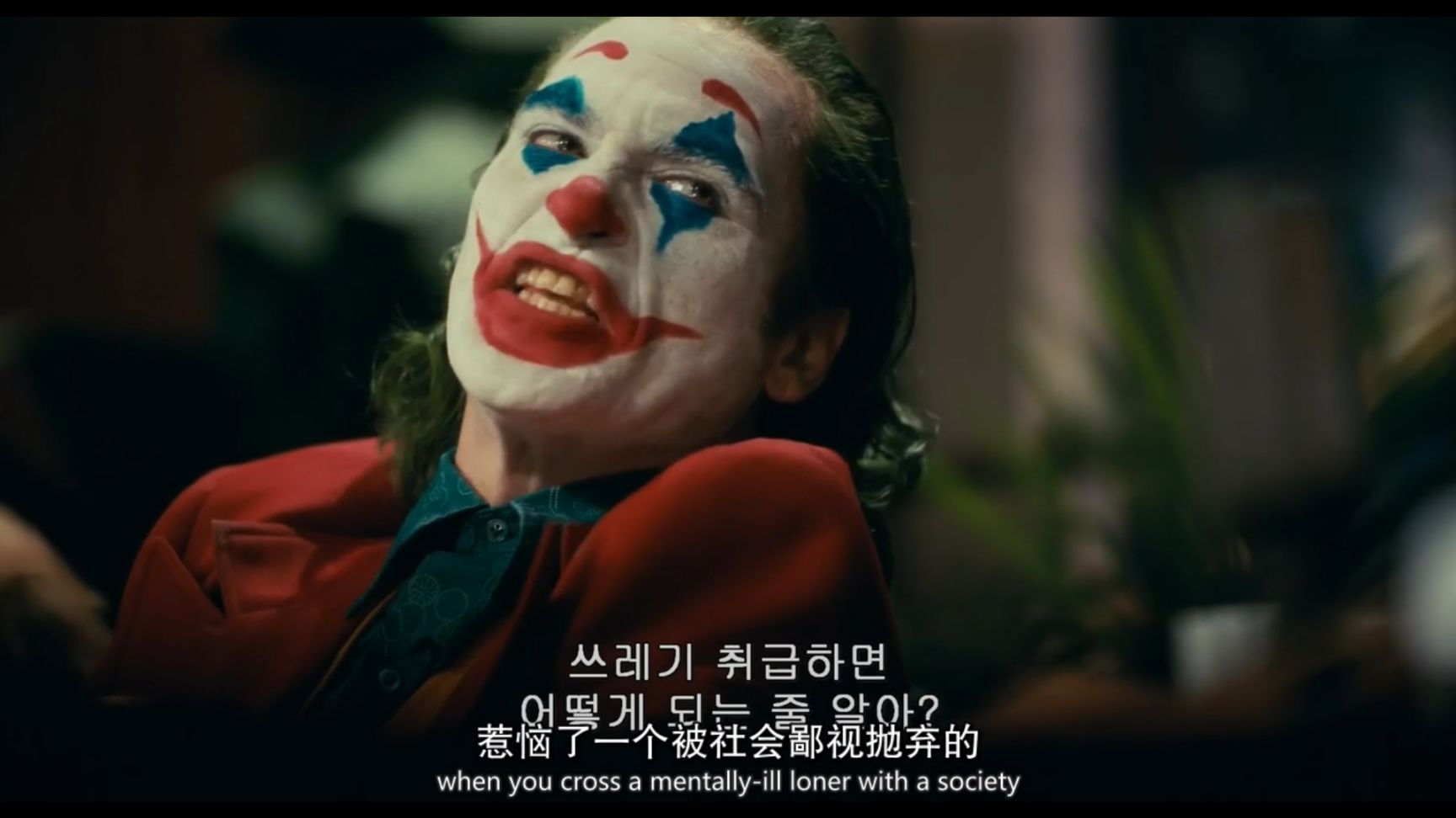 亞瑟對着直播的攝像機,控訴了這個無情和無可救藥的哥譚市,控訴着在場的每一個冷漠排斥他的人,控訴默裏邀請他上節目,只是爲了再次嘲諷他。
