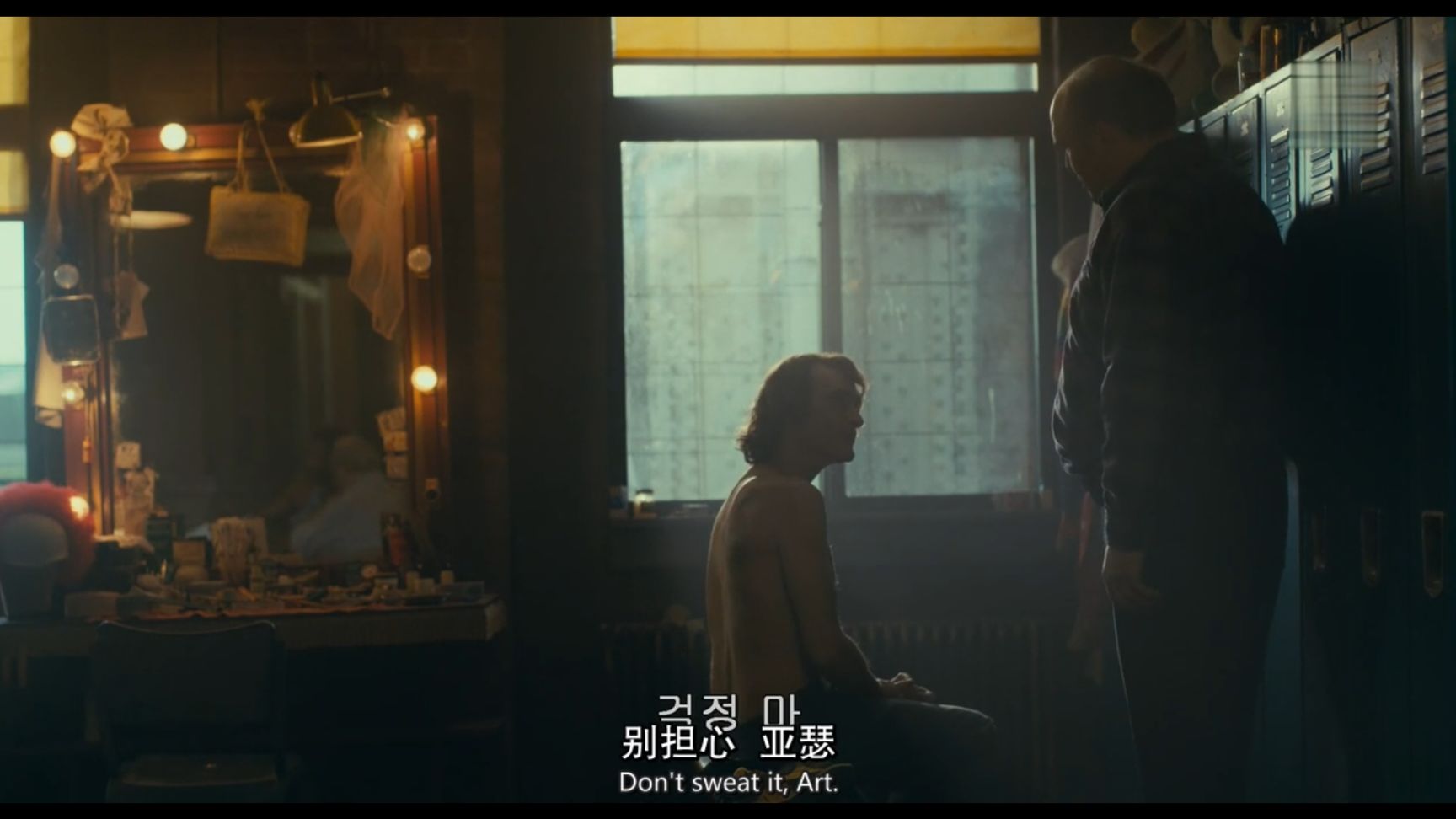 說完,亞瑟比了一個腦袋被槍擊的造型,鏡頭切換,亞瑟回到家中,聽着屋外救護車鈴聲大作,他將自己關進冰箱。