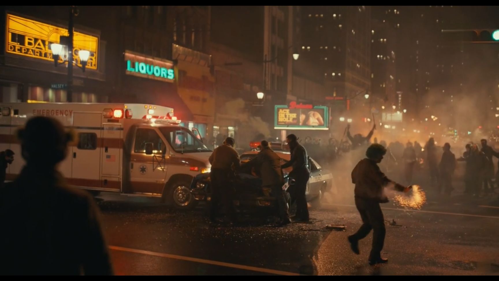 病態的亞瑟只不過是這病態的城市的一個縮影,而亞瑟的一生影射的恰恰是哥譚市的命運——亞瑟向小丑的轉變伴隨着的,是這座城市從壓抑到暴亂的轉變。