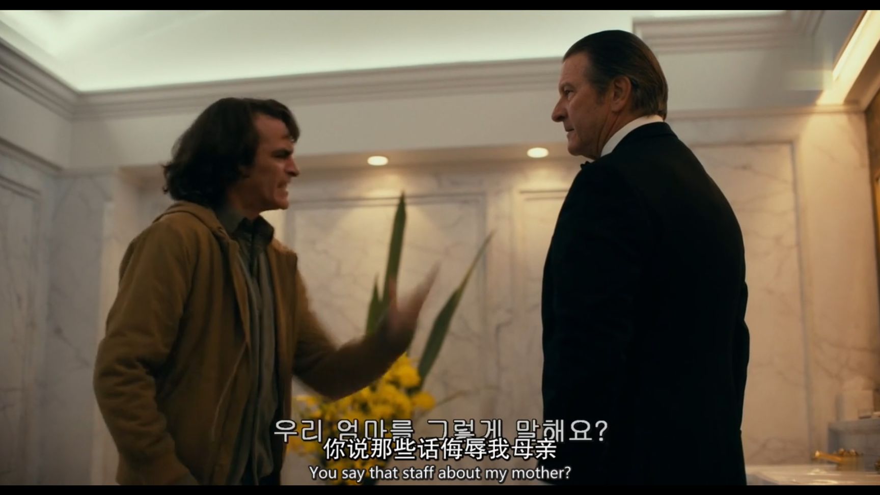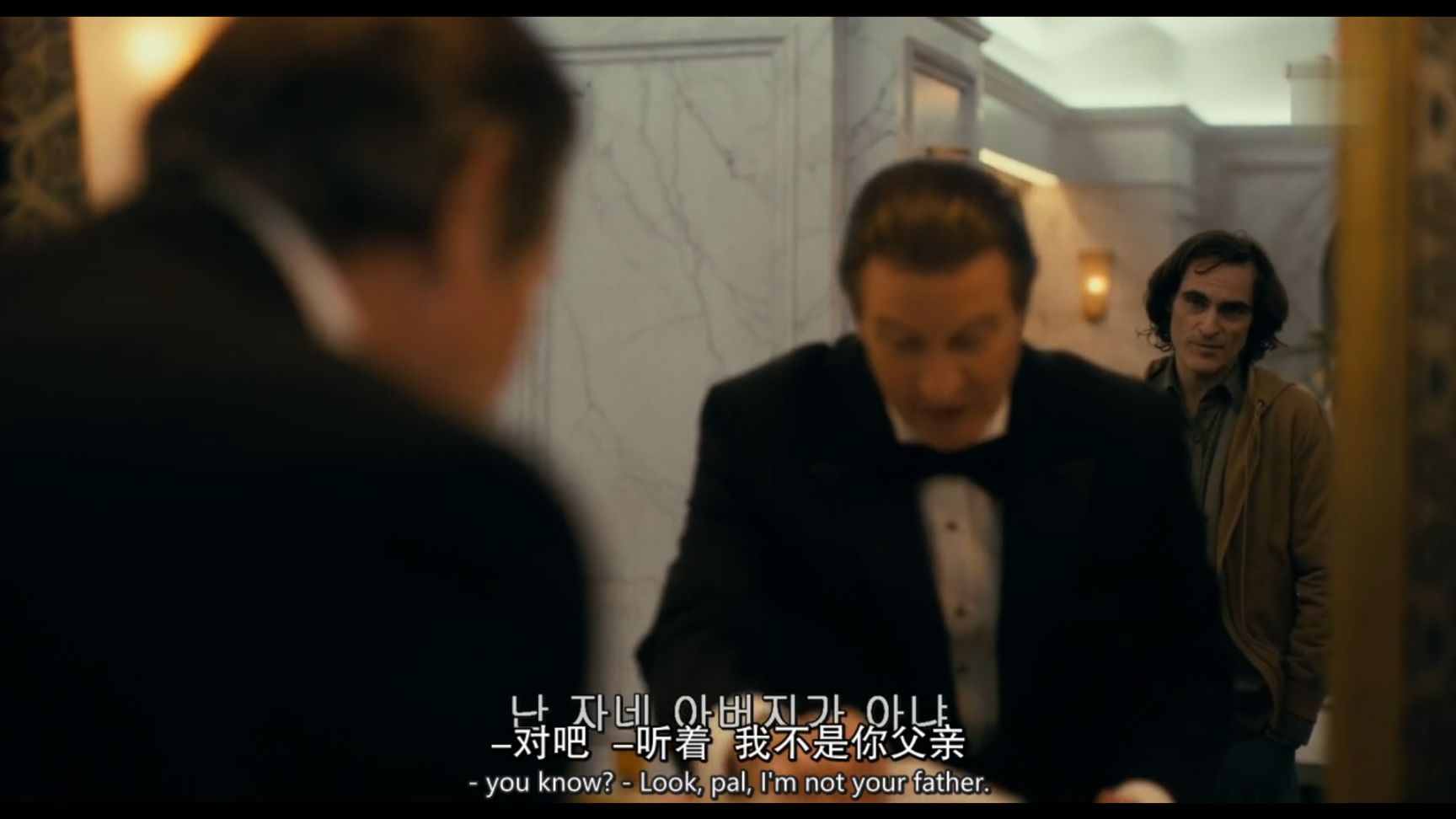 第二天晚上,混入晚宴廁所的亞瑟等到了托馬斯韋恩,他激動的說自己是他的兒子,並說知道了當年的一切,而托馬斯韋恩只是不屑的嘲諷他,他也說亞瑟的母親有妄想症,並說亞瑟是被收養的,亞瑟怒不可遏,厲聲質問托馬斯怎麼可以這樣說他的母親,他什麼都不需要,不爲錢財不爲名利,只爲得到一個來自父親的擁抱,托馬斯看着歇斯底里的亞瑟,只是給他來了一擊重拳。