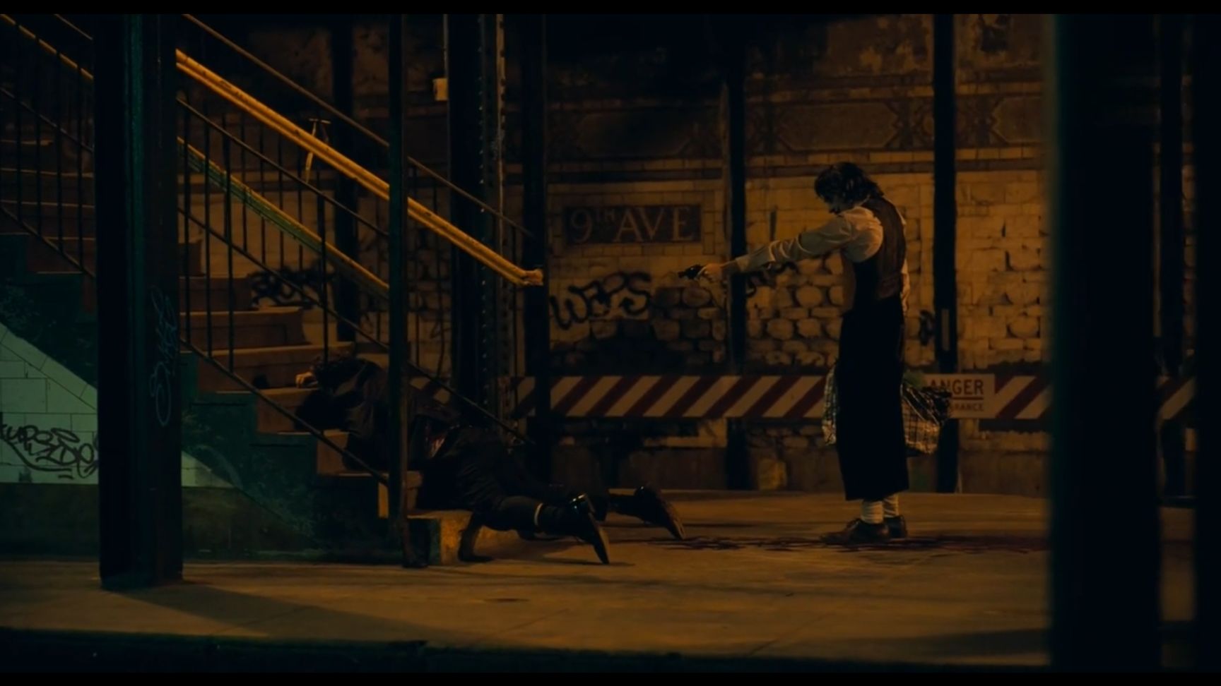 初次之外,在鏡頭並沒有着重描寫亞瑟的心理變化時,作品中還運用了大量莫蘭迪配色來做主色調,將亞瑟的陰鬱和社會的陰鬱融爲一體,讓觀衆無時無刻倍感壓抑。