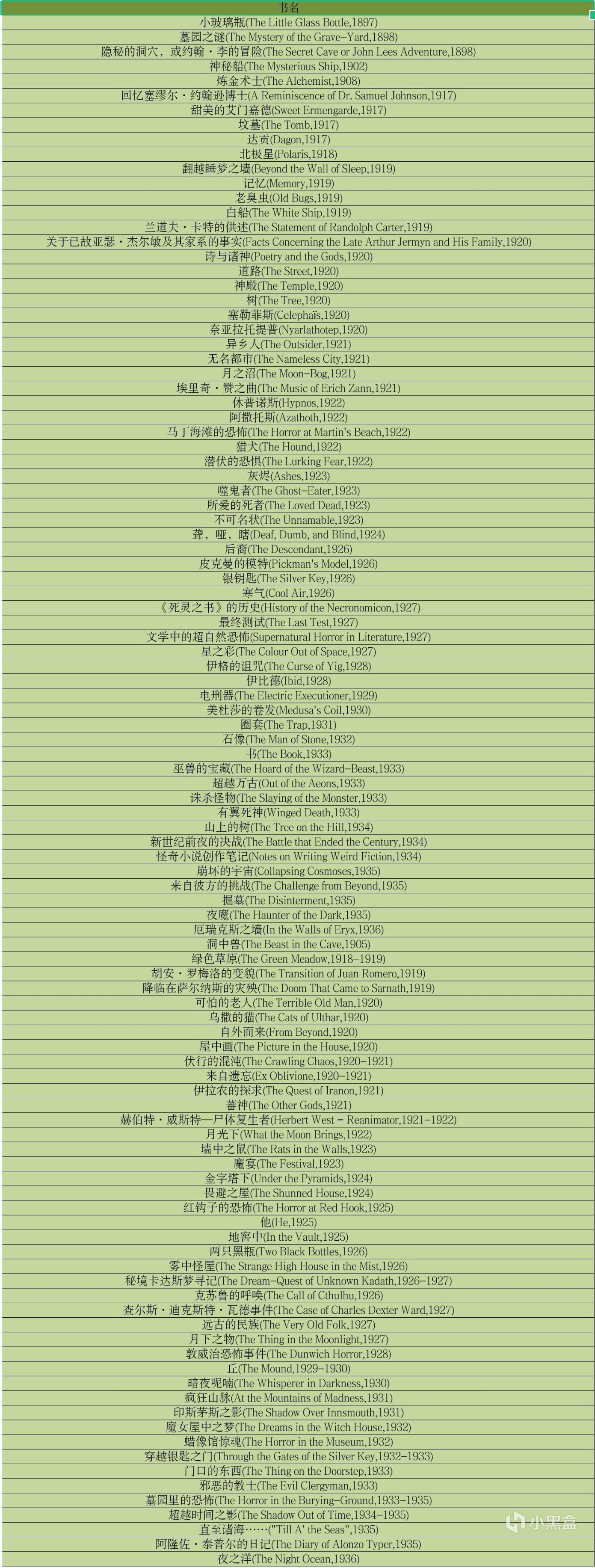 洛夫克拉夫特全部作品(包括合著、代笔、化名作等)