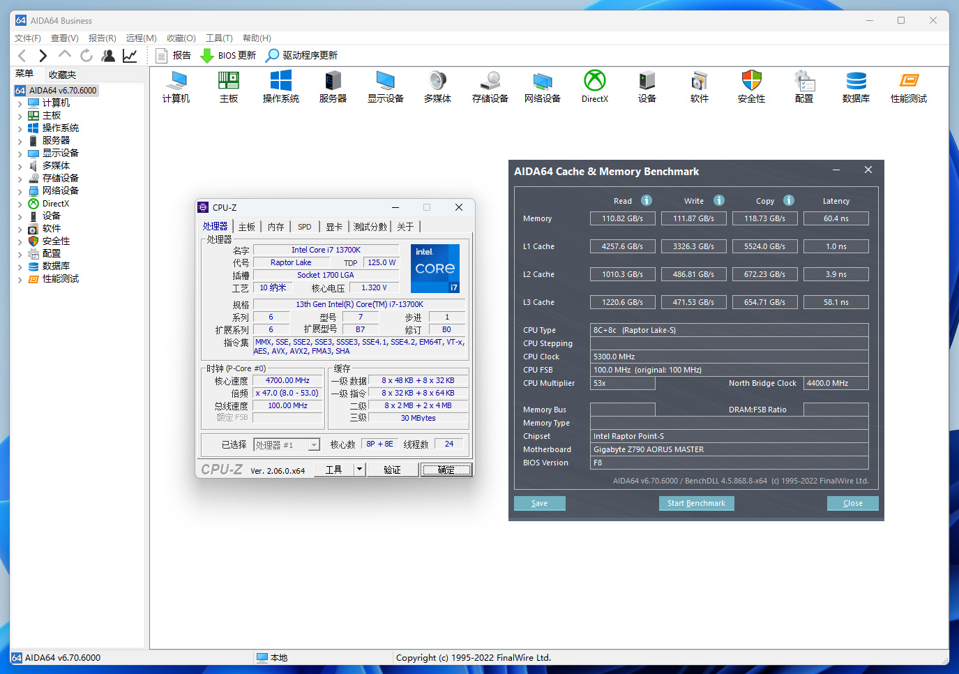 CPU选择Intel i5-13400F,超到6800MHz是没问题的,体质较好可以超到7000MHz以上。