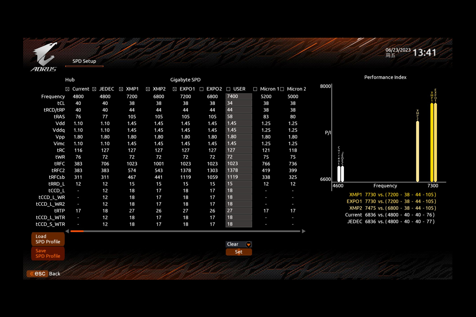 内存频率修改为7600MHz,SP值大于90建议7800MHz起步。