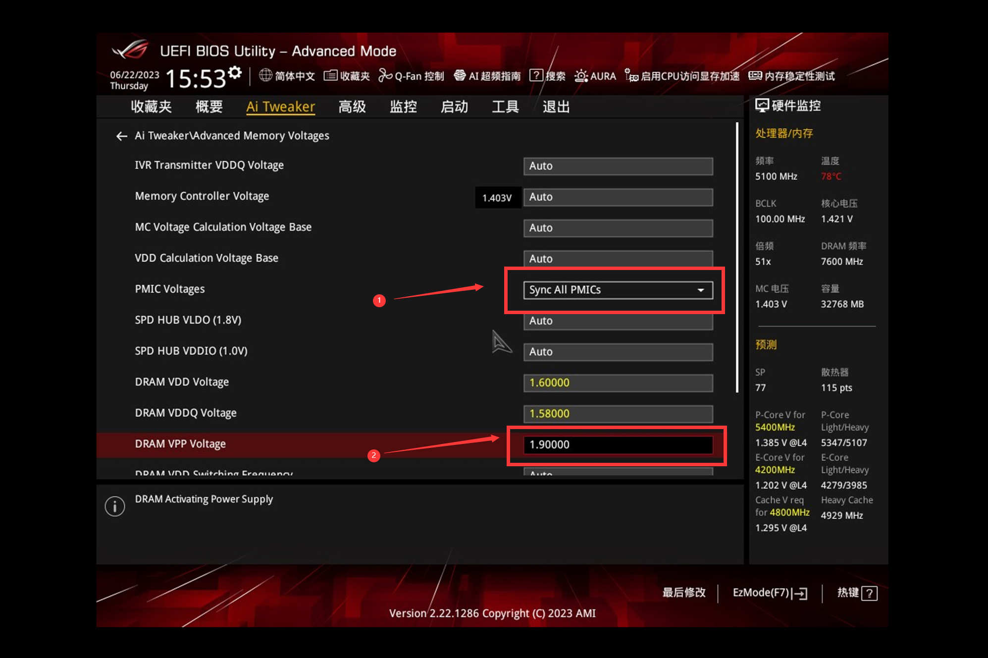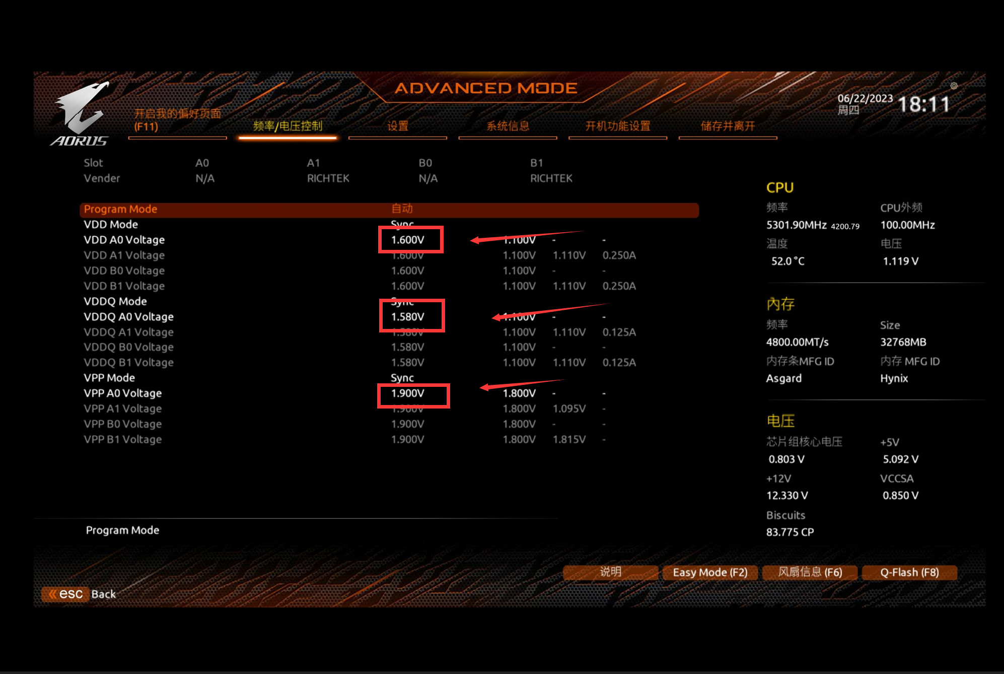 修改VPP A0 Voltage,配置为1.7V,CPU体质比较好可以1.9V起手。