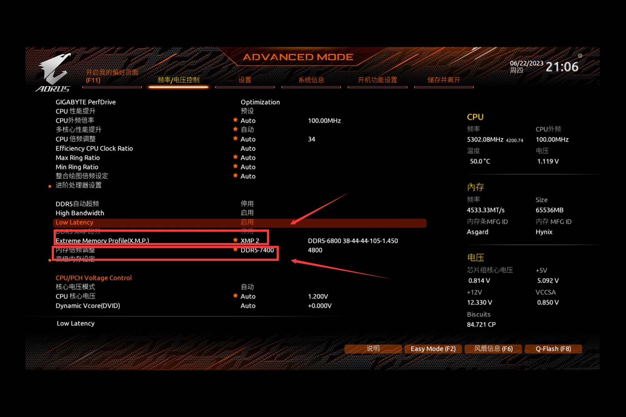 开启XMP比较简单,进入BIOS点击首页的开启,但是还没完,往下看。