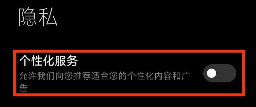 8.5选择“隐私和安全”,将“个性化推荐设置”关闭,广告设置同样关闭