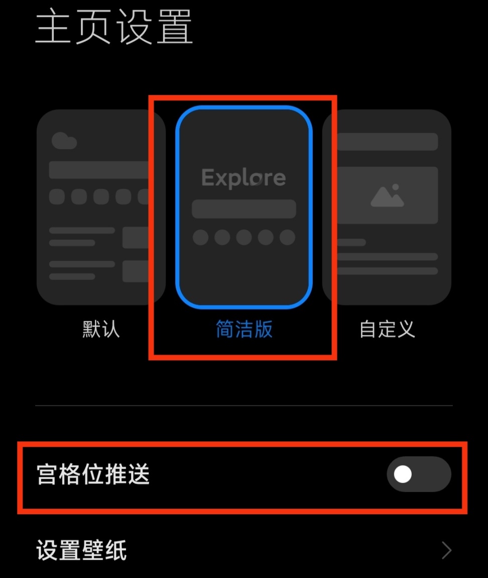 8.2选择底部三杠–设置–主页设置,建议使用“简洁版”,并将“宫位格推送”关闭