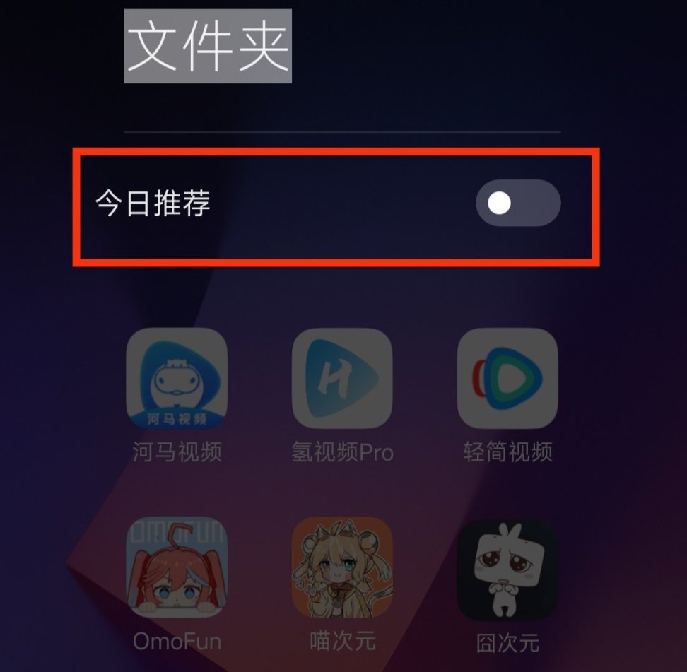 1.7任意文件夹,点击文件夹名称,关闭今日推荐