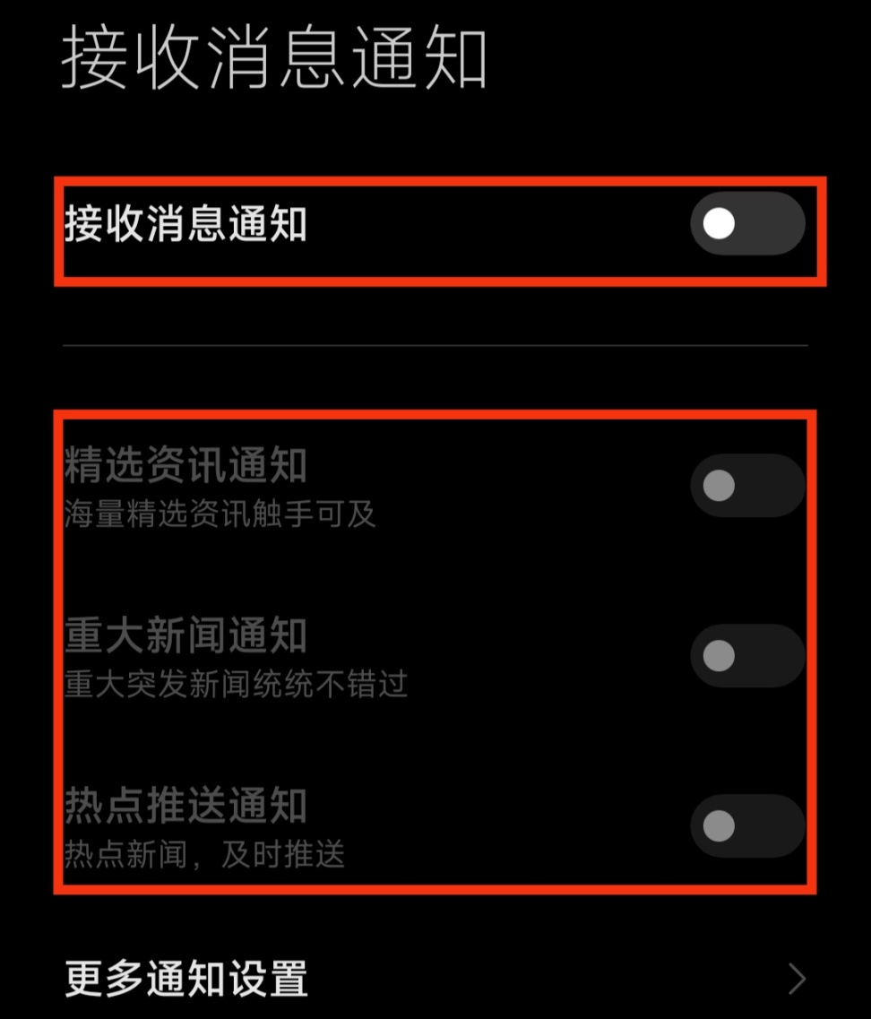 8.3仍然在设置界面,找到“消息通知管理”,将下面三个通知全部关闭,直接关闭接收消息通知也可