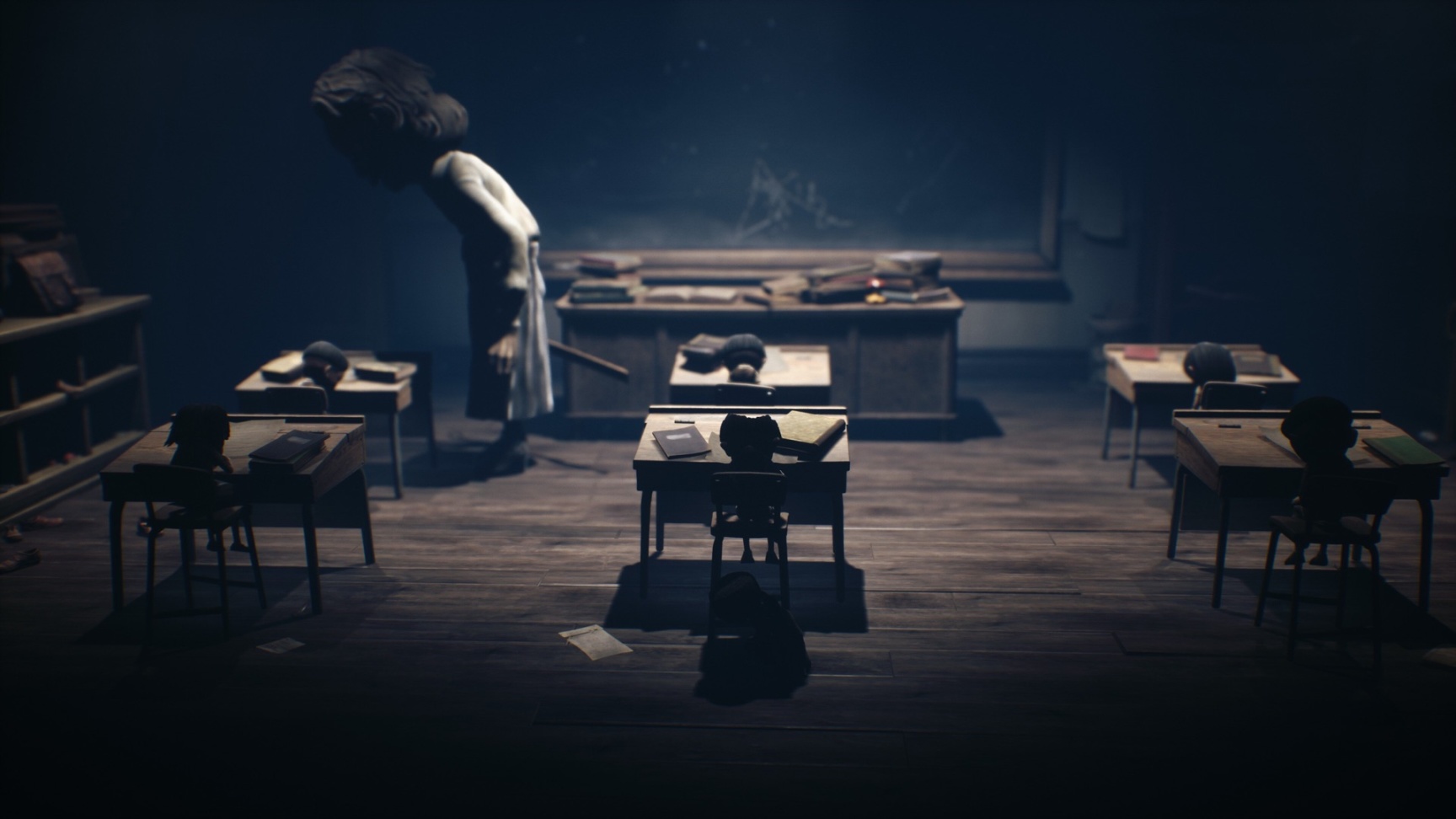 二代作品中收集的黑色人影,其實是此前逃離而被殺害的孩子們的靈魂。莫諾孤獨的前進着,他遇到了一臺電視機,而小六則在電視機中向他發出求救。大喜所望的莫諾正欲將小六救出,突然一雙大手將小六捉回,並從電視機中鑽出。