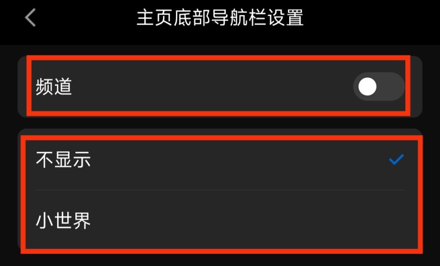 2.5在设置–辅助功能–主页底部导航栏设置,将频道关闭,小世界选为不显示
