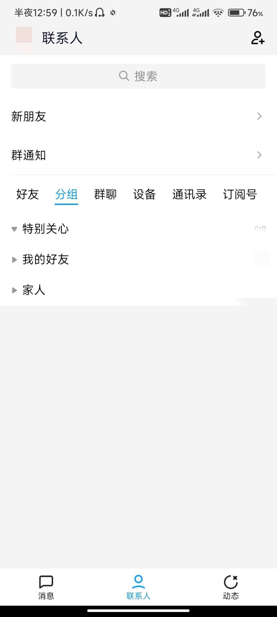 1.2同样是动态界面,选择“更多”–右上管理,按自己需求安排,这里我只留了一个无法移除的好友动态