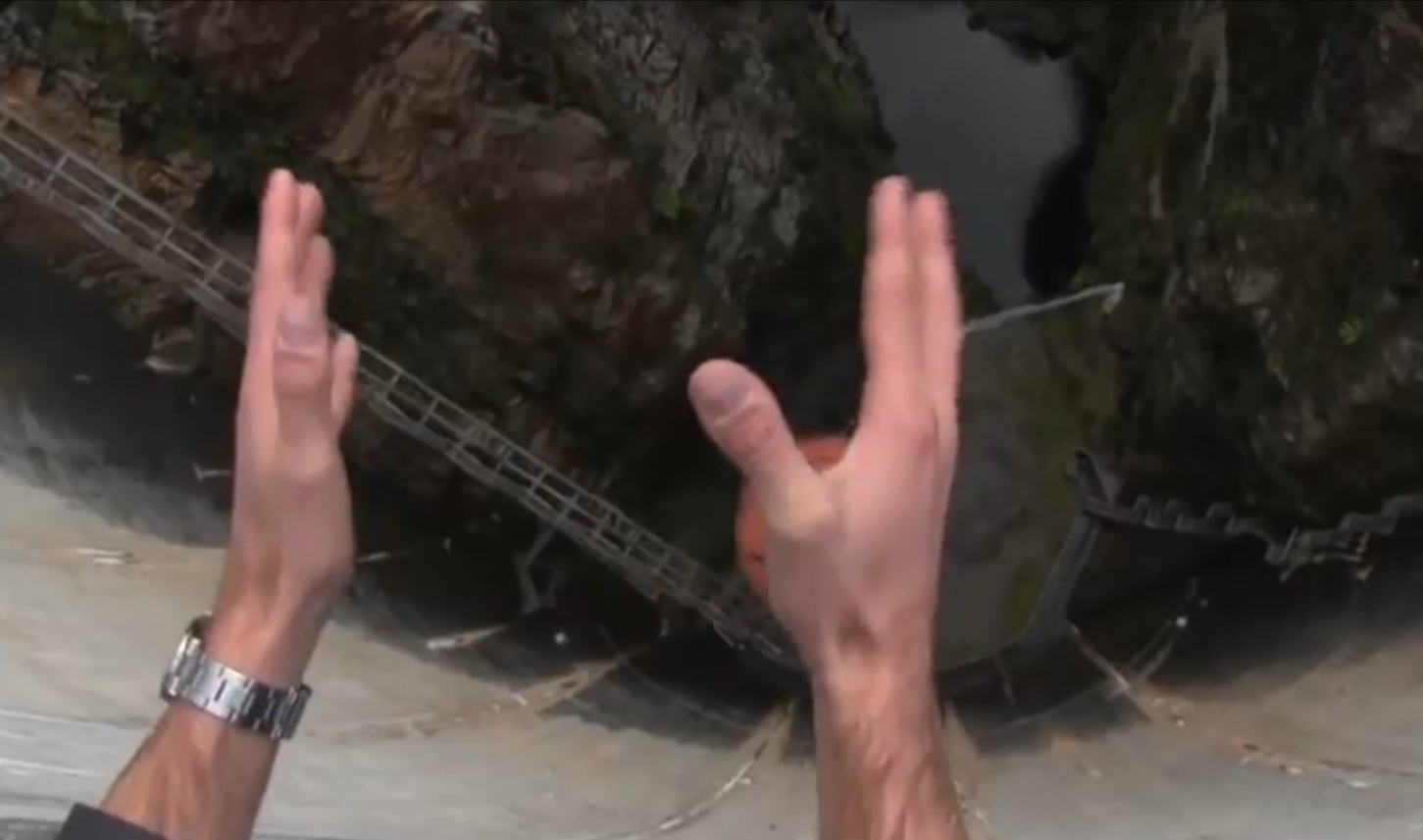 2015年,一个德国的实验团队在140米高的大坝上,将一个篮球前后旋转后抛下。篮球并没有垂直落入水面而是运动轨迹是一个弧线状。