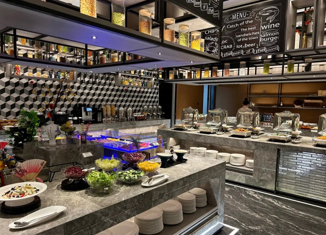 再说回来,自助早餐的菜品本身,也只能说尚可水平,与国际酒店集团的“精选”型酒店提供的早餐差不多,符合四星级的定位,早餐大厨现做的热食主要是臊子面和泡馍儿,也算是西安的当地特色了,其他诸如寿司面包炒热菜也是有的,不过顶多也就每个品类四个选项罢了,算不上多,也算不上什么顶级的鲜美可口,但至少新鲜热乎,提供给宾客们开启新的一天的初始体能。