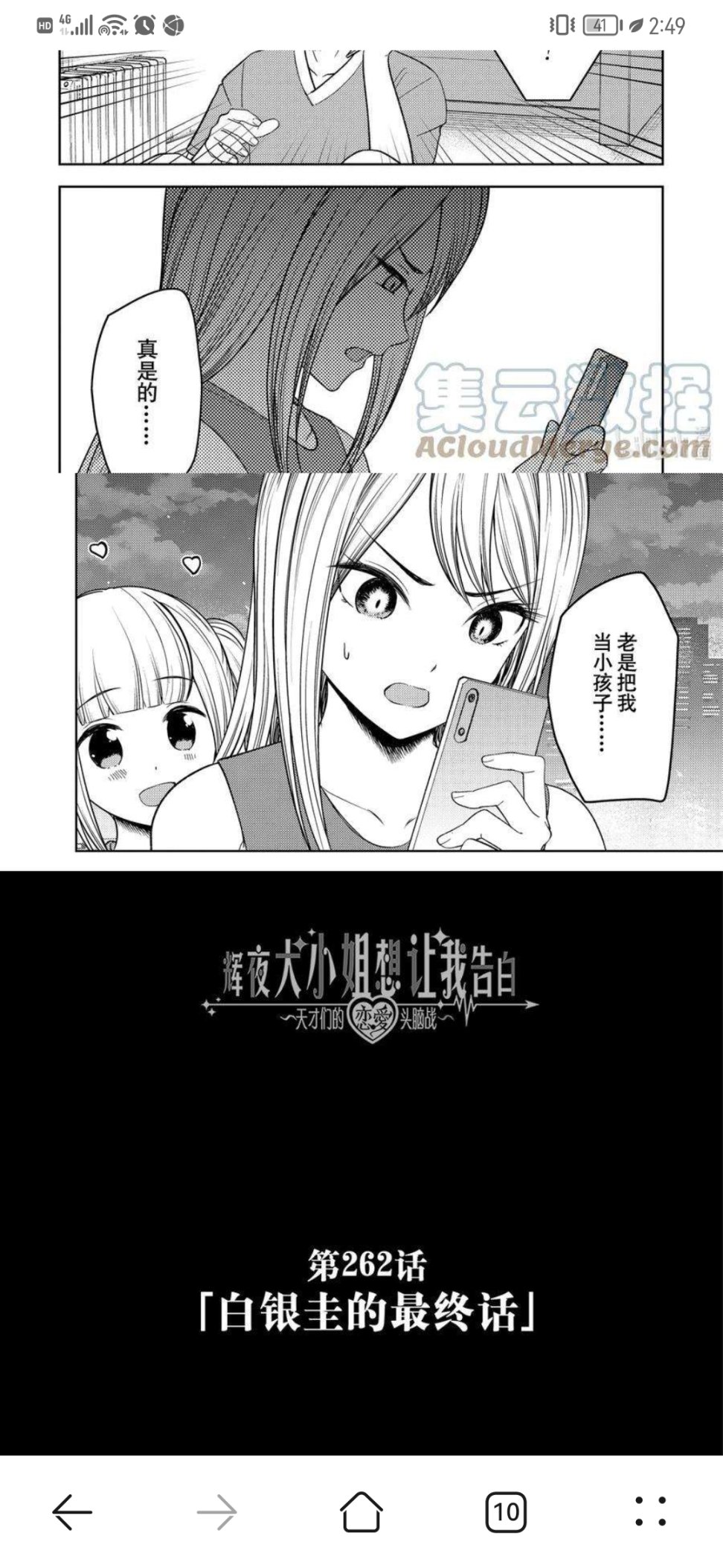 目前辉夜正处于收尾阶段,赤坂正在给每个角色画短篇收尾,但实际上好像什么都没解决,比如白银圭的结尾,虽然回收了白银妈妈的伏笔,但不得不在主线之外另起一篇,已经显得剧情割裂了,而且也并没有给妹妹安排什么结局之类的东西。虽然笔者还在追,但已经不抱太大希望了,相比平稳落地,我反而更希望赤坂整个烂活来的好看