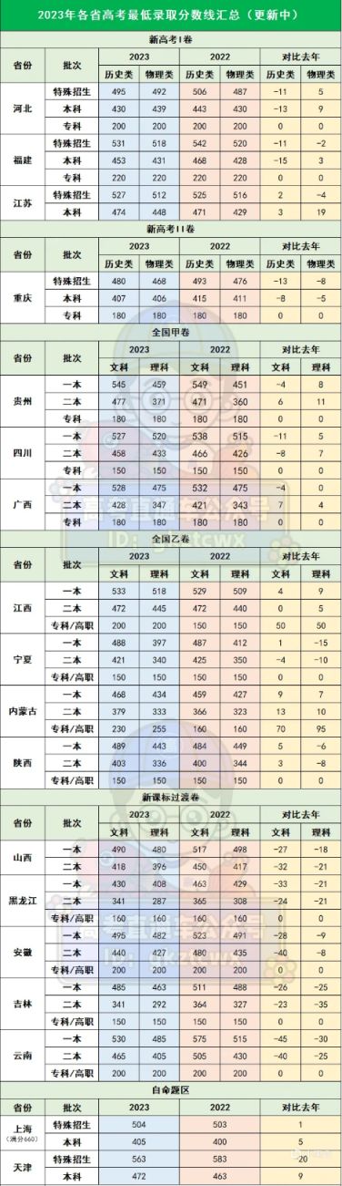 端午假期,2023年的高考分數線陸續出爐,截至目前,已經有河南、吉林、寧夏、江西、雲南、上海、內蒙古、四川、黑龍江、安徽、廣西、貴州、陝西、重慶、山西、天津等多地公佈分數,歷史/物理科目類的本科線也已經出爐,同時公開的還有非常重要的“一分一段”統計表,考生可以根據往年位次估測目標院校分數線填報志願!(文末彙總版分數線)