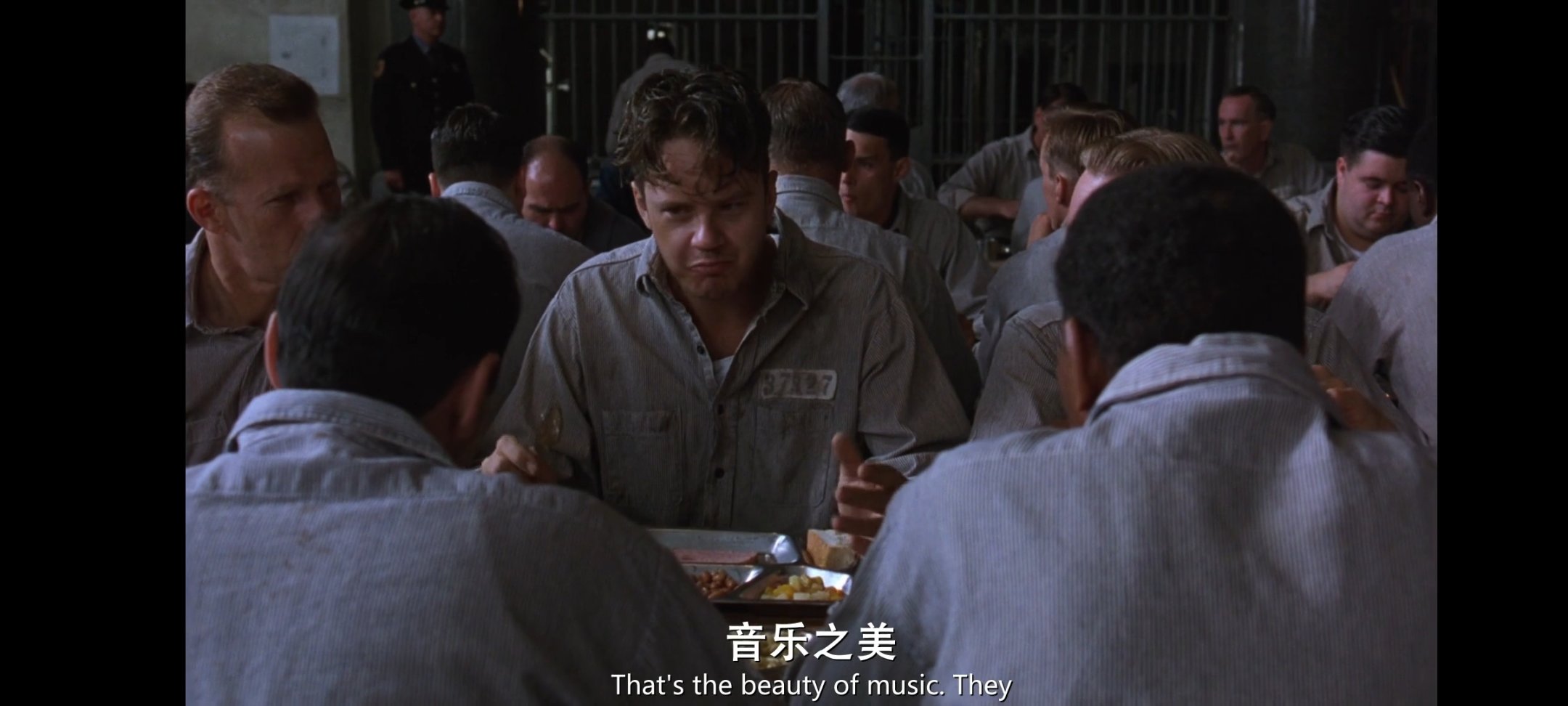 时间如白驹过隙,转眼安迪入狱已经十年了,长达6年向市政府申请的信终于有了消息,随信而来的是200美元的资金补助和一堆老书和老唱片,安迪在广播室里趁警卫上厕所偷走了钥匙,锁上了所有的门,将唱片放置在唱片机里,对着广播麦克风,放起了音乐,那曼妙的音乐让整座监狱的人安静下来,他们都望向麦克风的方向,仿佛不再置身监狱,而是已经身处围墙之外,体会着早已忘却的自由。