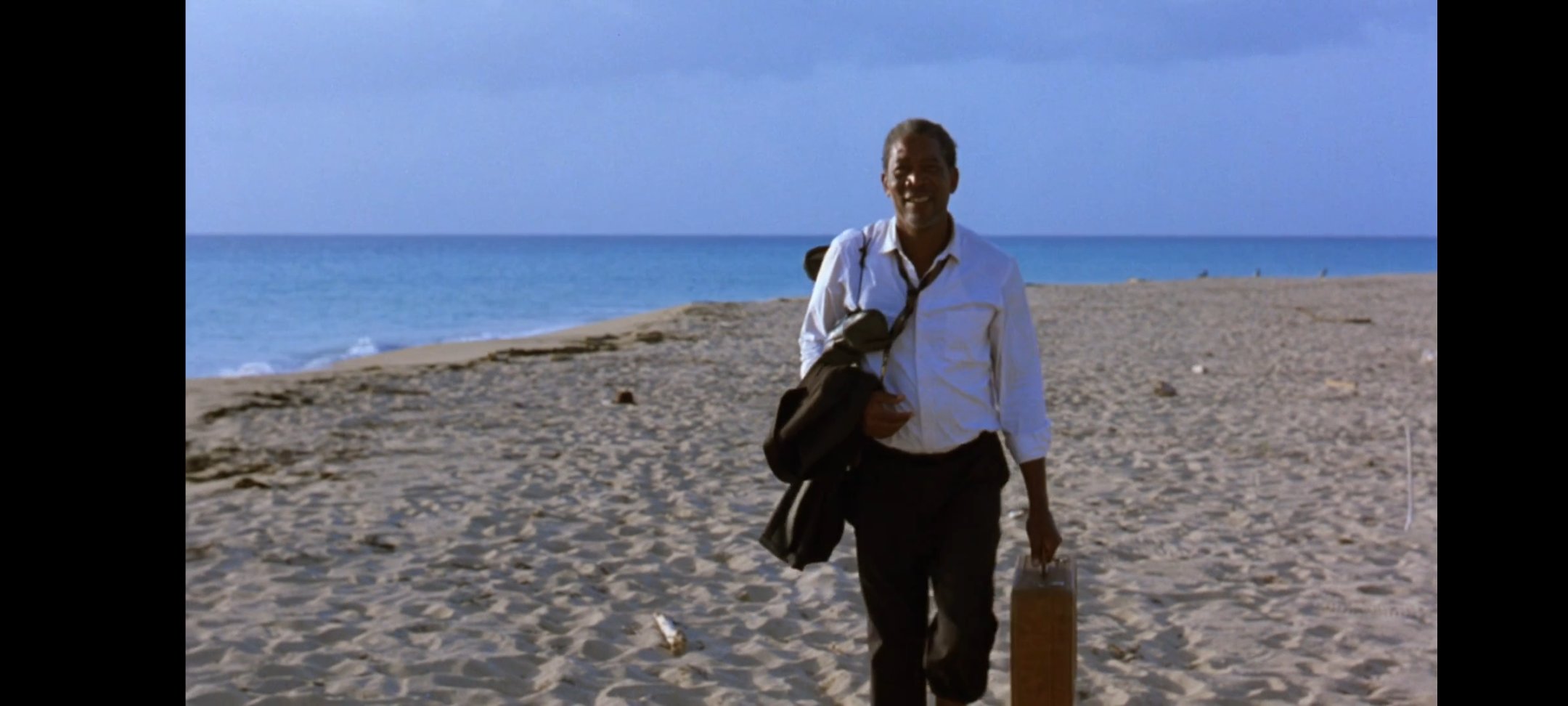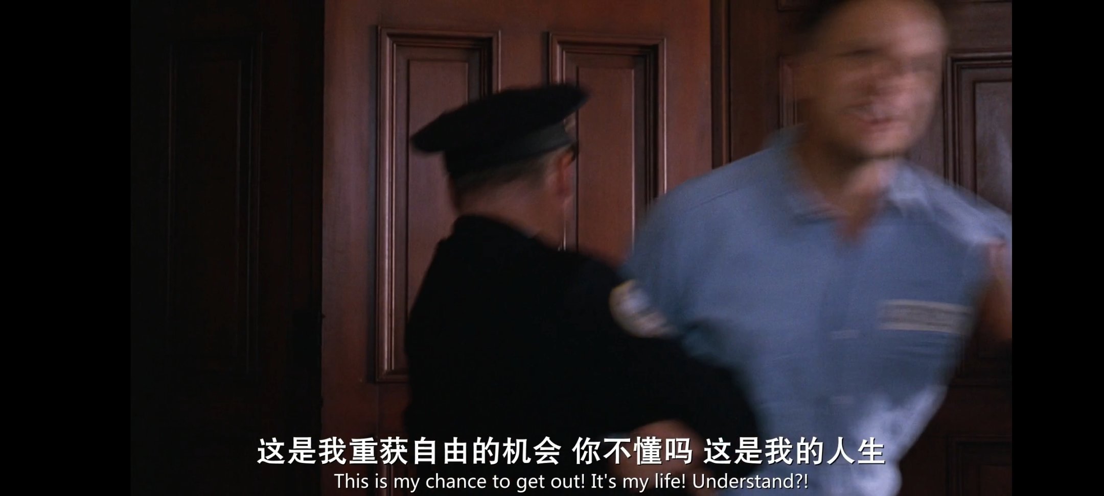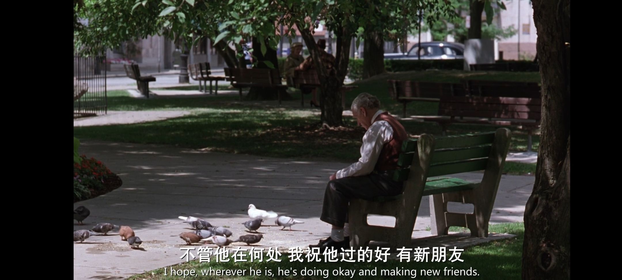 接下来的几年里,大家反复提起安迪逃出生天的经历和他的过去,他们都以拥有这样的朋友而自豪,此时瑞德也以入狱40年,再一次假释申请时,他破天荒的得到了批准,可是他此时也面临着跟老布同样的境况,住着老布的房间,做着老布的工作,40年的牢狱生涯让他连上厕所都需要跟上级申请,尽管店长已经说了让他随便去,不需要申请。