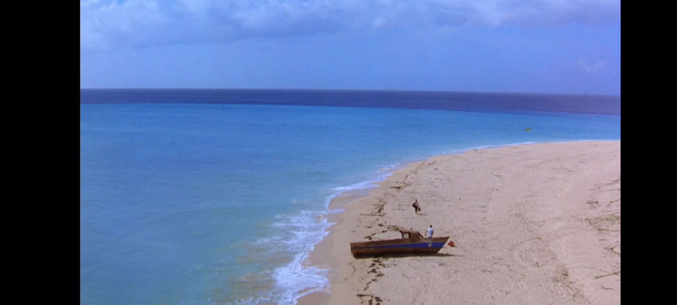 他的身旁是广袤无垠,蔚蓝美丽的大海,他的面前是一艘翻转的小船,小船上有一个老人正翻新着小船,瑞德停下脚步看着他,而老人也转过身,安迪和瑞德再次重逢,两位老人在象征着自由的大海旁紧紧相拥。