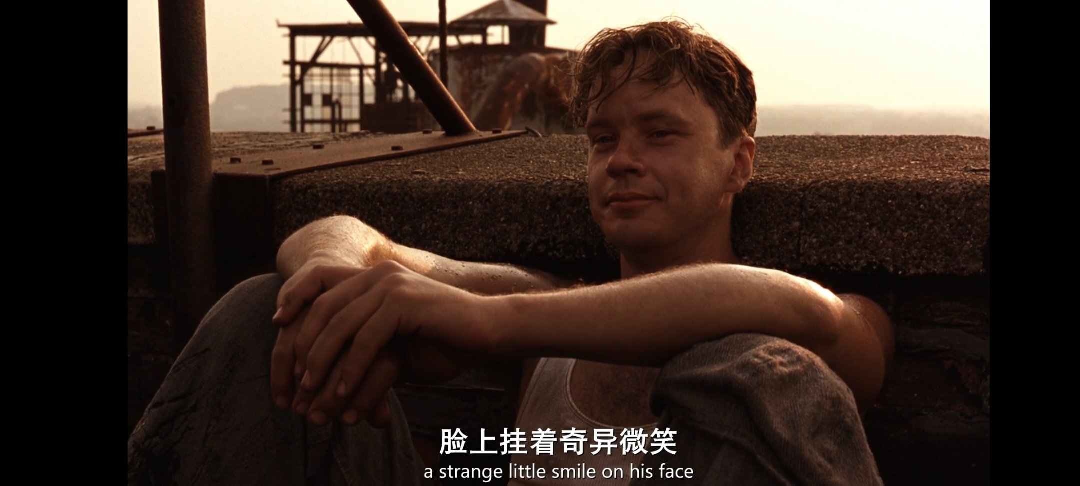 在完工的前一天,天台上的几个人一起痛饮啤酒,他们也与安迪成为了朋友,而安迪并没有喝,瑞德看着他,认为他不是为了拉拢队长或者他们,只是为了重拾自由的感觉。