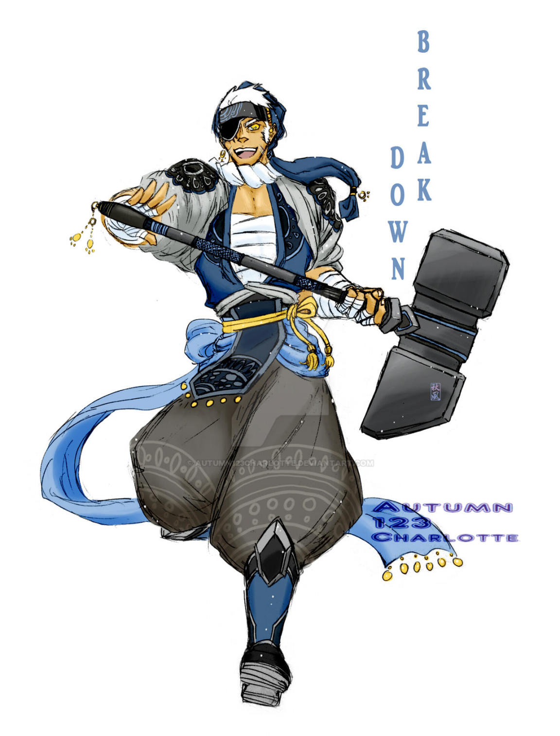 从手里的两件装备和壮硕的身体可以看出他是“典韦”,开个玩笑!他是变形金刚隔板的人形化设计。