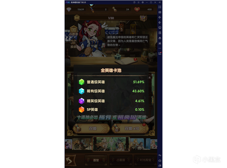 游戏里的英雄存在稀有度概念,绿卡无法进阶,蓝卡进阶上限为橙+,紫卡上限白色。