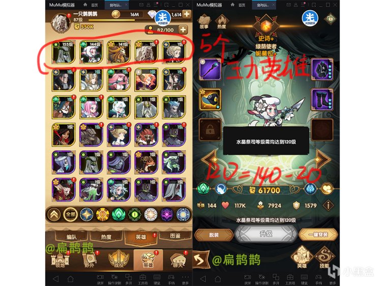 同时养5个英雄,那自然是没有养单个那么快。英雄升级的卡点主要在于英雄粉尘的获取。说是“休闲挂机,挂机升级”,实际上聪明地把英雄粉尘的单位时间产出隐藏起来。