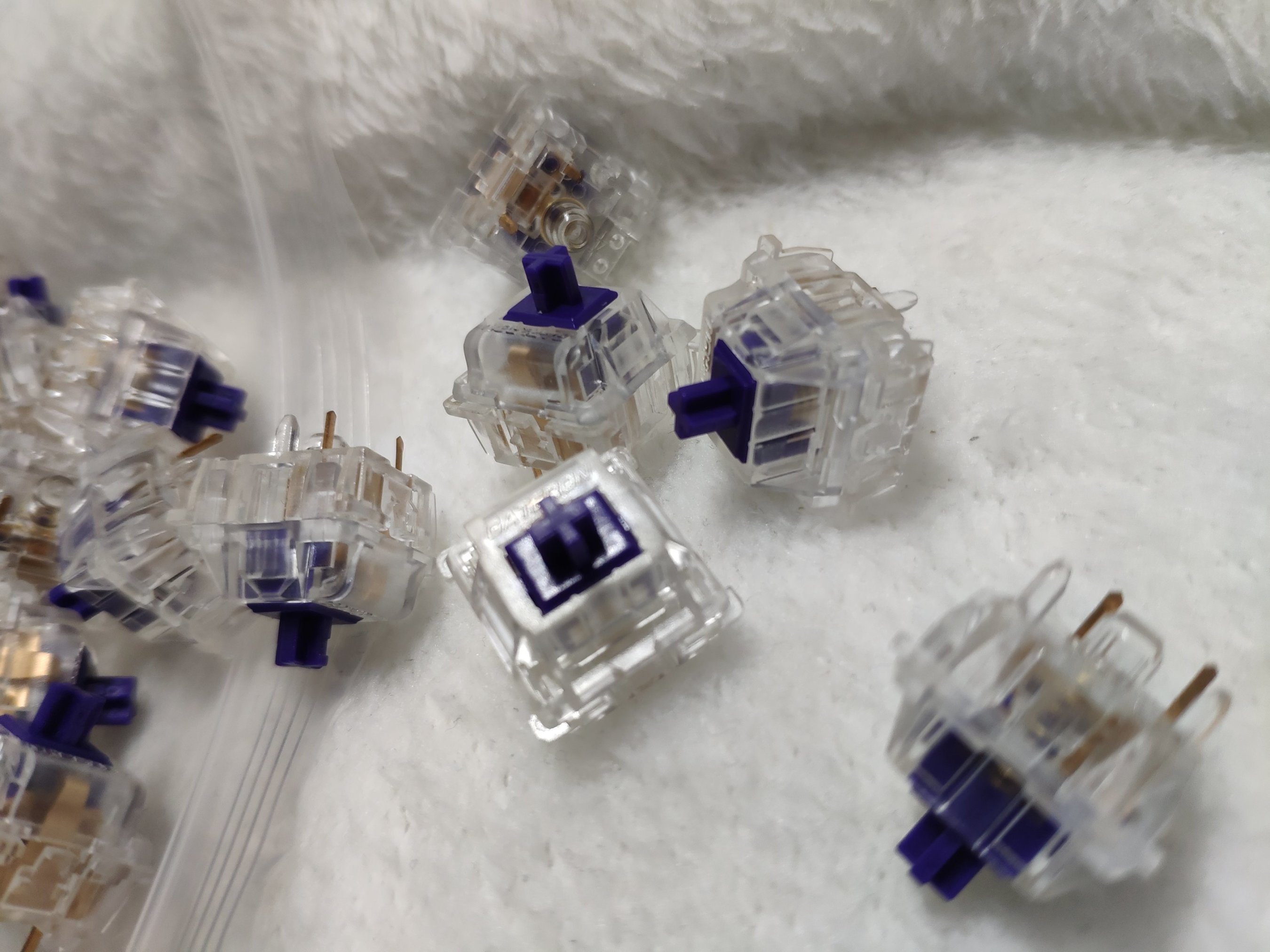 手感上没有什么大问题,因为价格低所以也是量产茶轴里比较推荐的轴之一,但是声音上有明显杂音,嘎吱嘎吱啪啪啪的,在弹片上涂致死量润滑脂才得到改善,本来佳达隆出厂就有很多厂润因此到手只需润弹片即可。