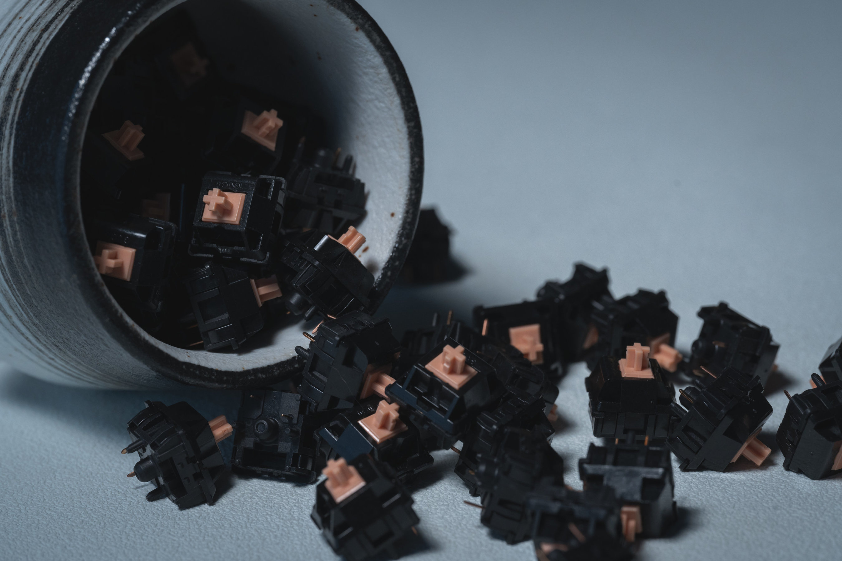 这款轴体的初始表现并不好,但是润轴之后手感非常好,相对于标准的茶轴手感比较面,非常的舒适,属于倒腾后性价比超高的轴体。
