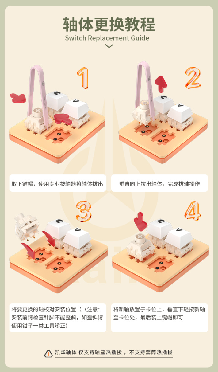 对了,借用凯华的一张图,给大家讲讲如何热插拔更换轴体: