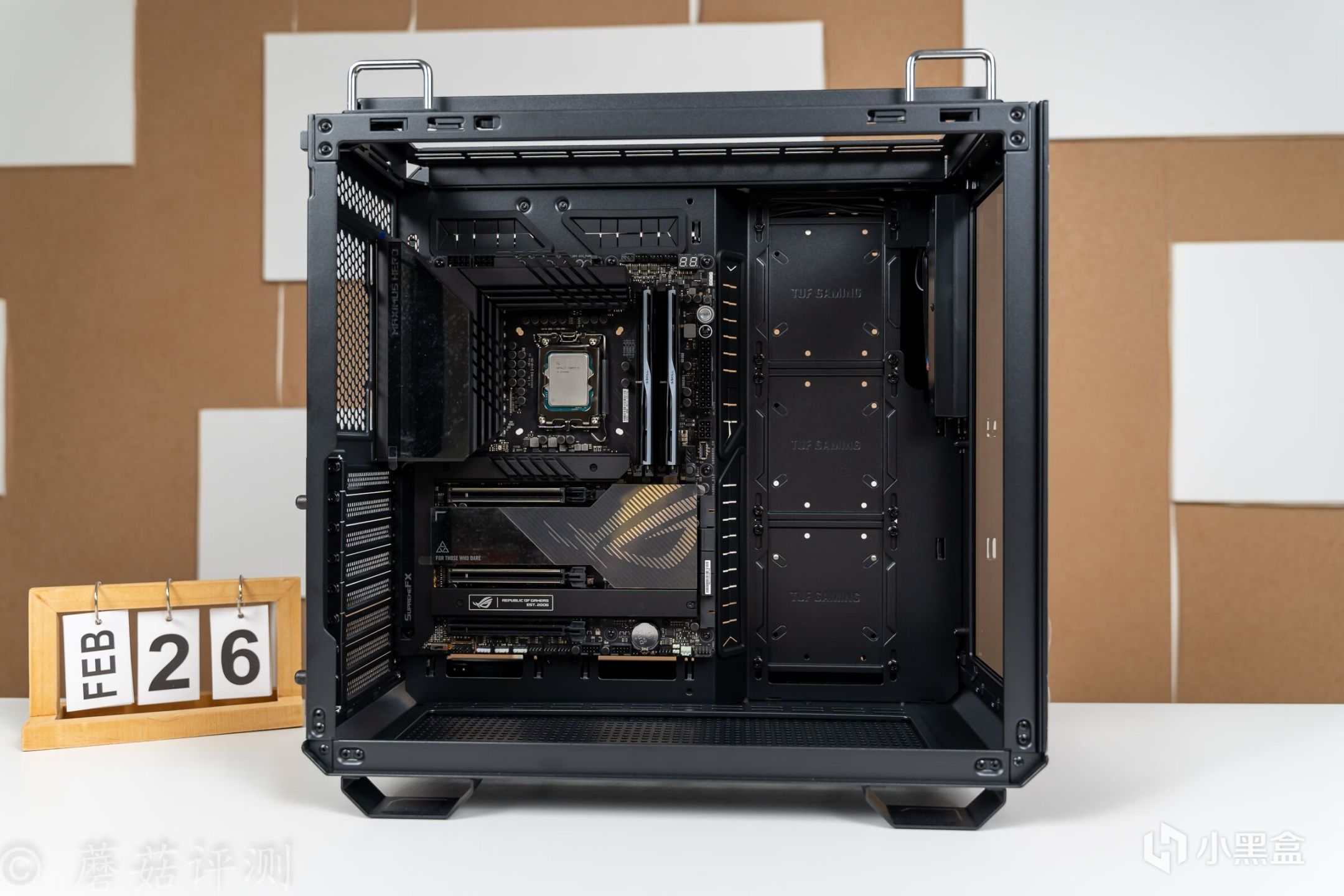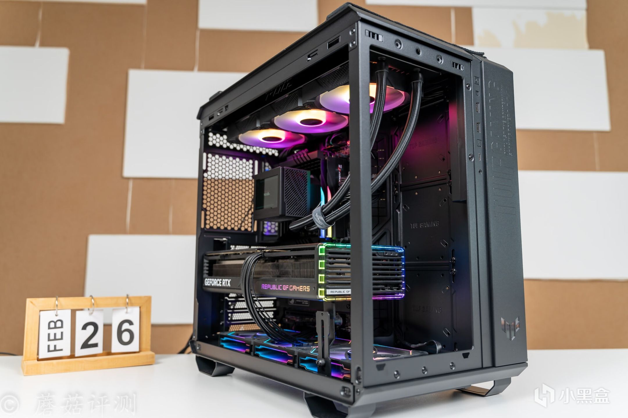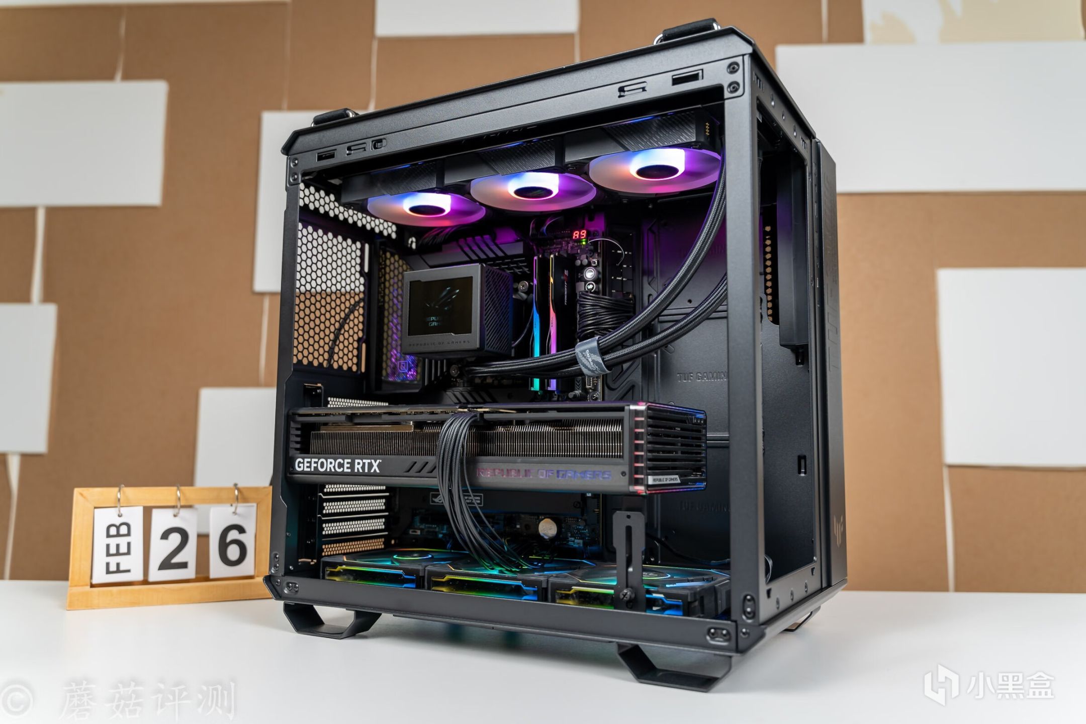 這臺主機的整體表現還是非常不錯的,蘑菇個人非常喜歡。雖然機箱不是ROG的創世神,但蘑菇個人感覺TUF的這款GT502彈藥庫機箱的整體的功能性表現要更好一些,機箱的側面有多個金屬蓋板,可以在上面安裝硬盤。另外,機箱的電源倉上部還有一個用於固定機箱風扇的框架,那個框架哪裏也可以固定硬盤,只需要多購買幾個側面的金屬蓋板就行。