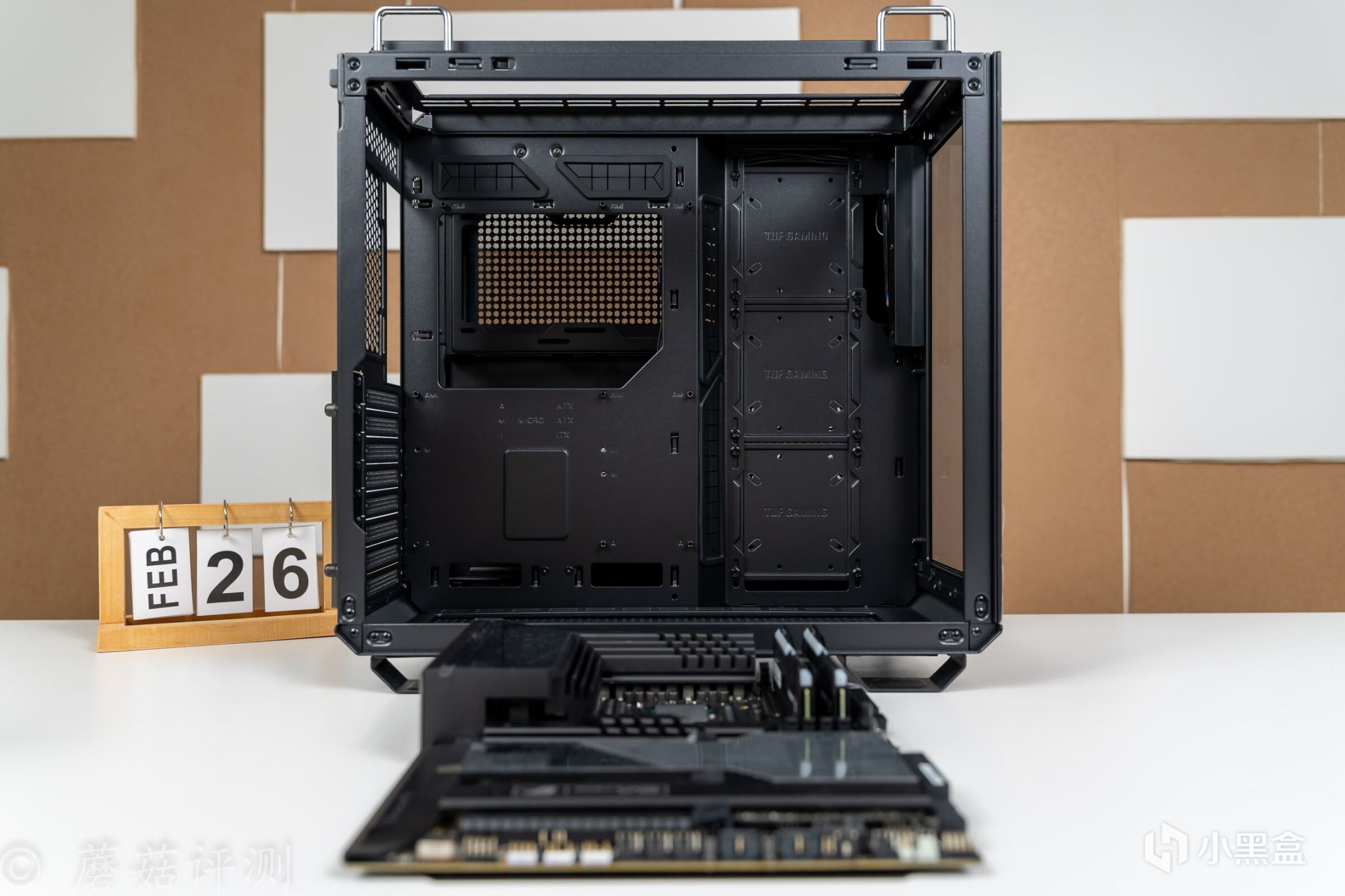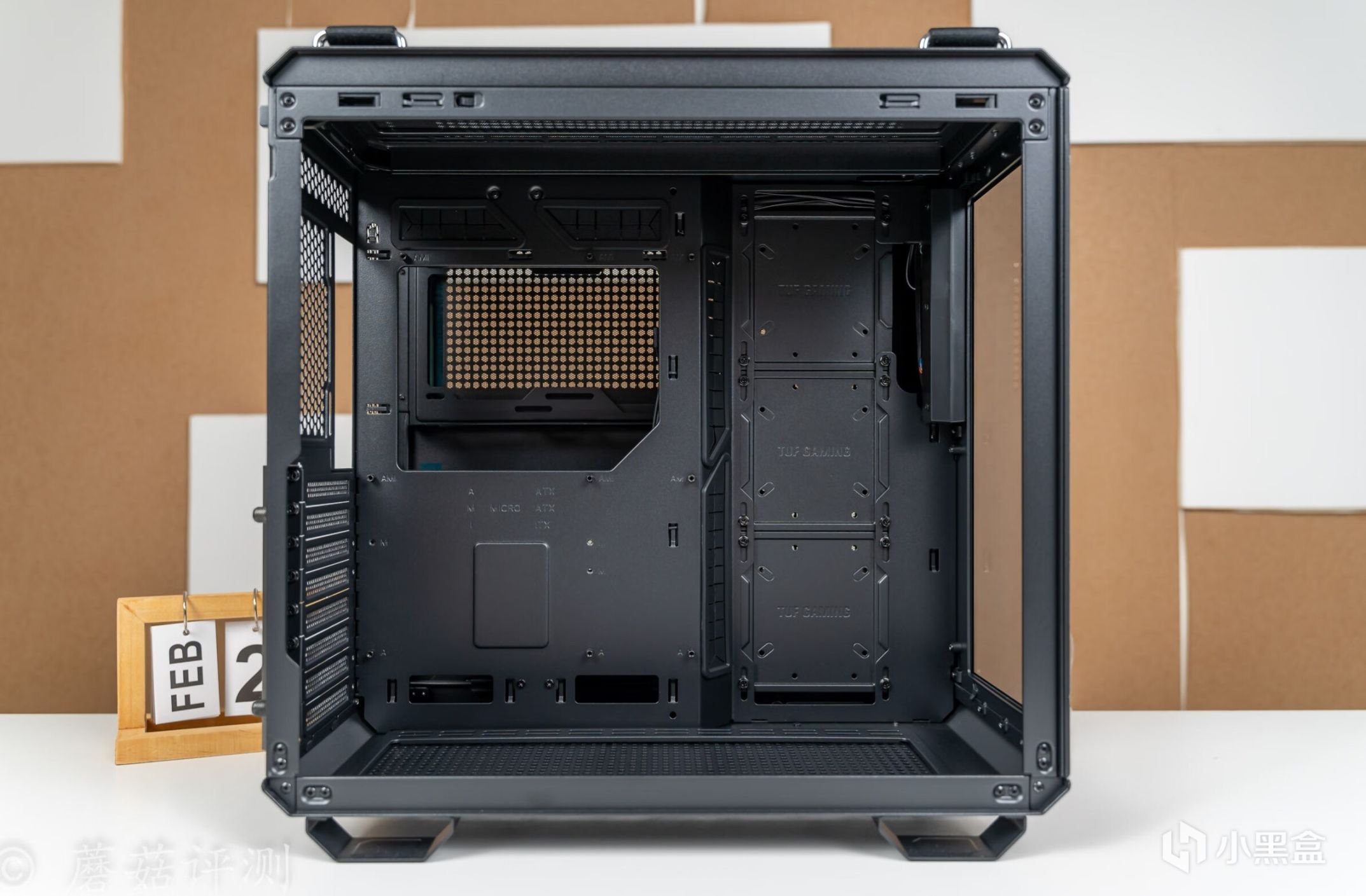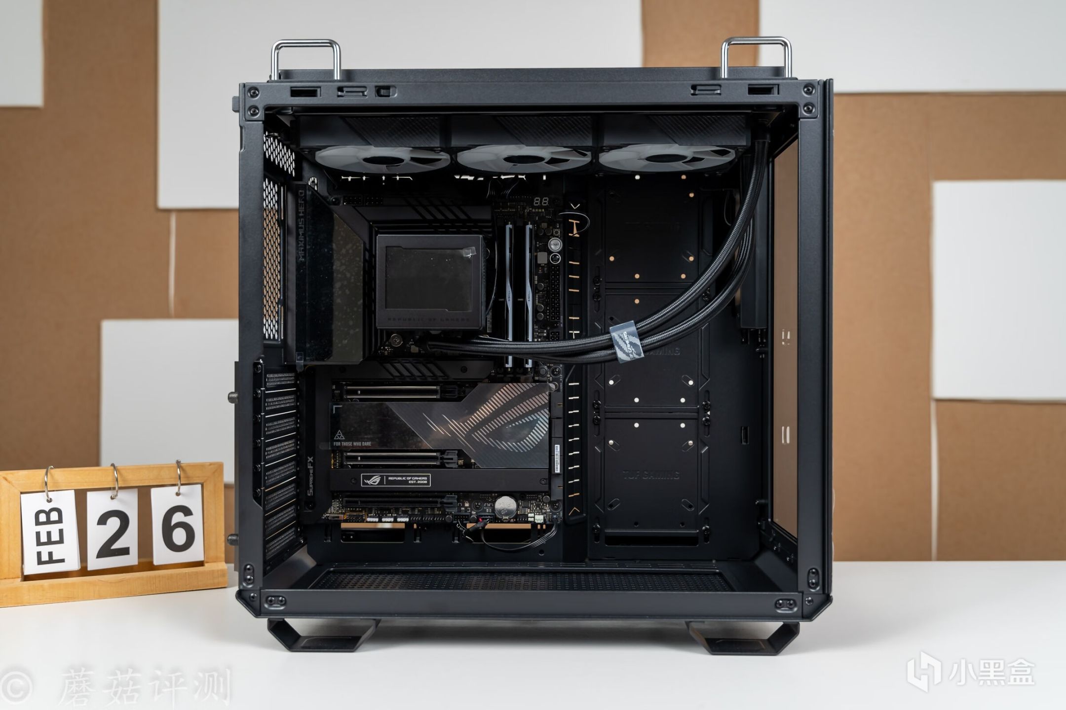 這臺主機的整體表現還是非常不錯的,蘑菇個人非常喜歡。雖然機箱不是ROG的創世神,但蘑菇個人感覺TUF的這款GT502彈藥庫機箱的整體的功能性表現要更好一些,機箱的側面有多個金屬蓋板,可以在上面安裝硬盤。另外,機箱的電源倉上部還有一個用於固定機箱風扇的框架,那個框架哪裏也可以固定硬盤,只需要多購買幾個側面的金屬蓋板就行。
