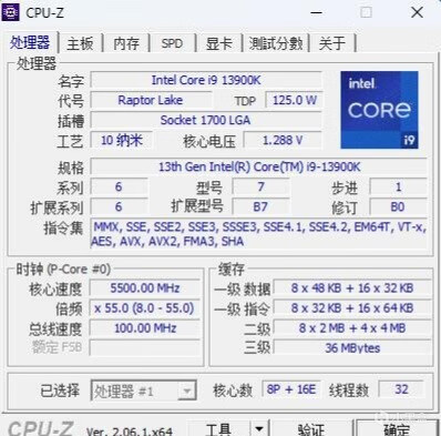 ▼處理器是13900K,硬件規格很給力,8個大核、16個小核,三級緩存36MB,性能很強。