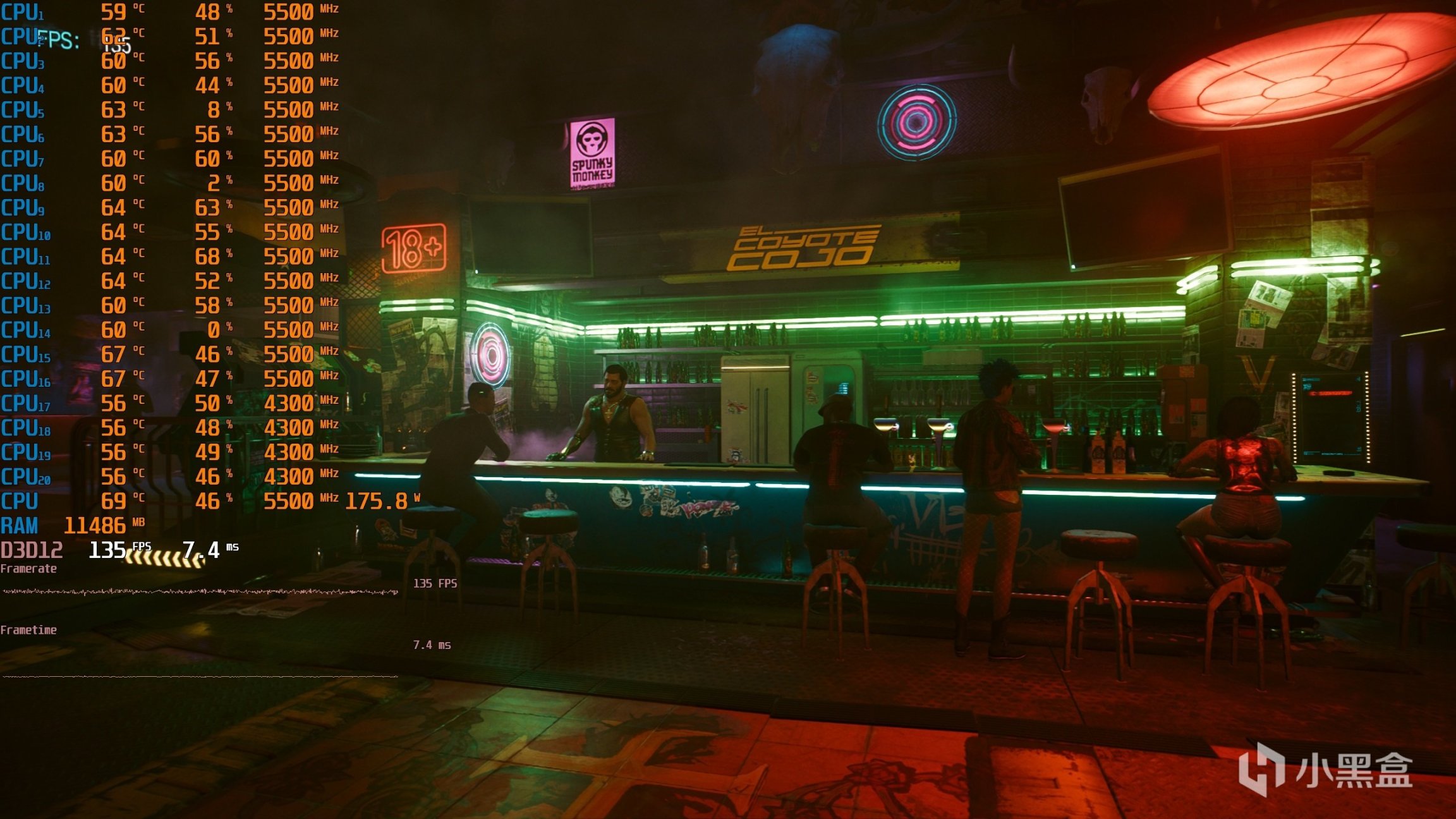 ▼酒吧遊戲幀數在135幀左右,挺流暢的。