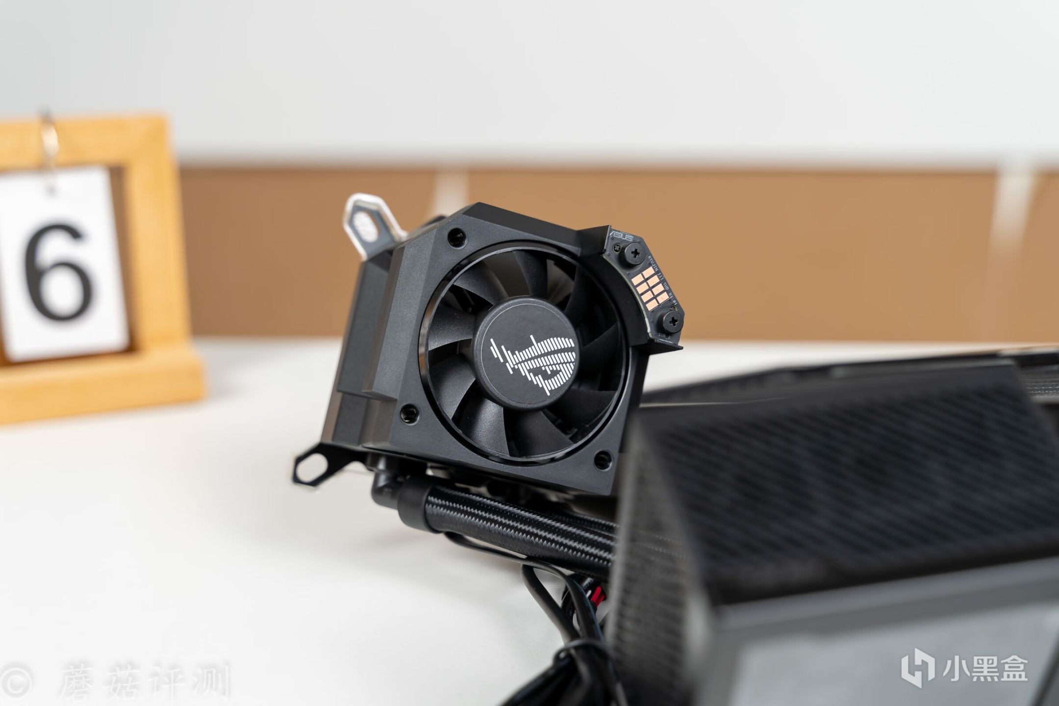▼水冷頭的液晶屏幕依然採用熟悉的磁吸式設計,日常裝機非常方便。下面標配了一個軸流風扇,可以在水冷頭周圍建立散熱風道,輔助周圍硬件散熱。