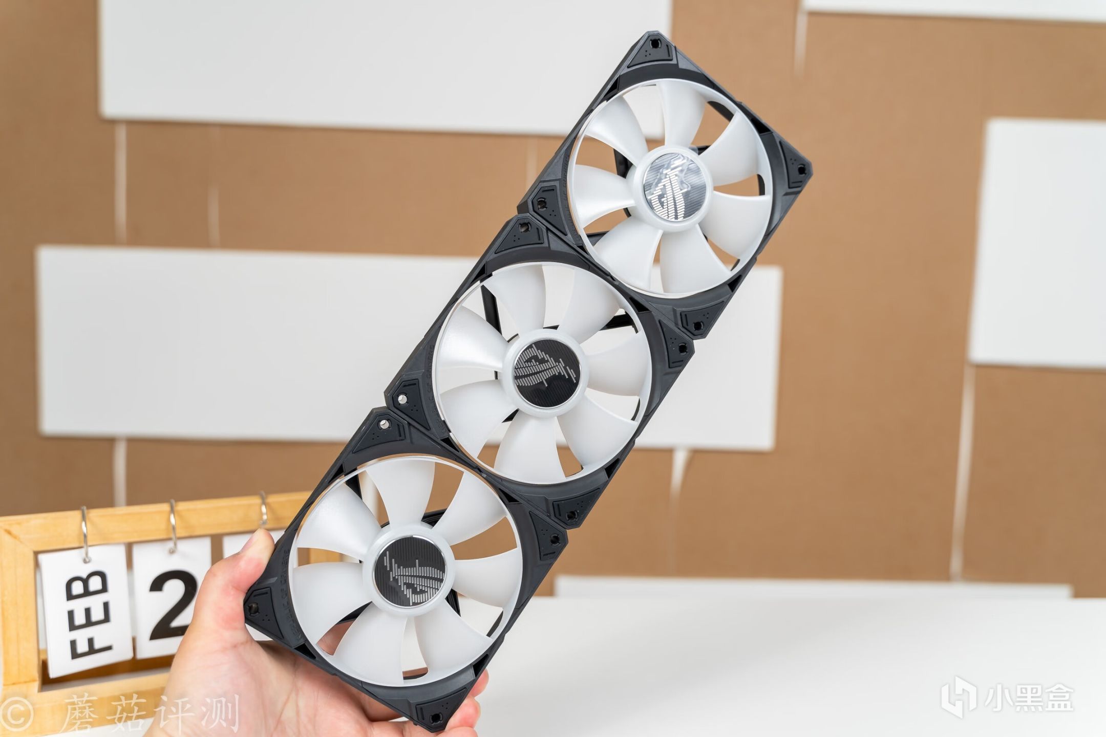 ▼水冷排的冷排風扇也採用了全新的設計,扇葉是熟悉的7片軸流扇葉,乳白色的。但其供電方面採用了全新的磁吸式設計,極大的方便了日常裝機、走線。